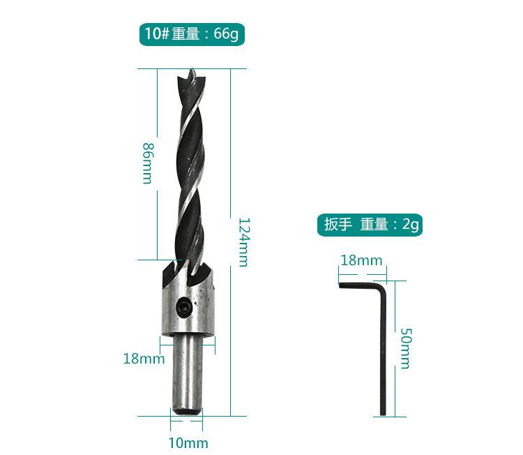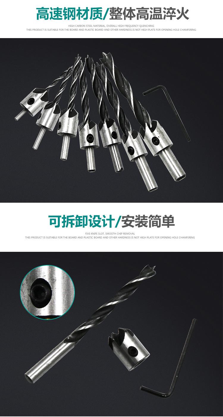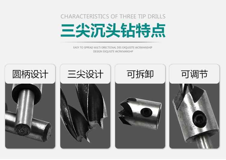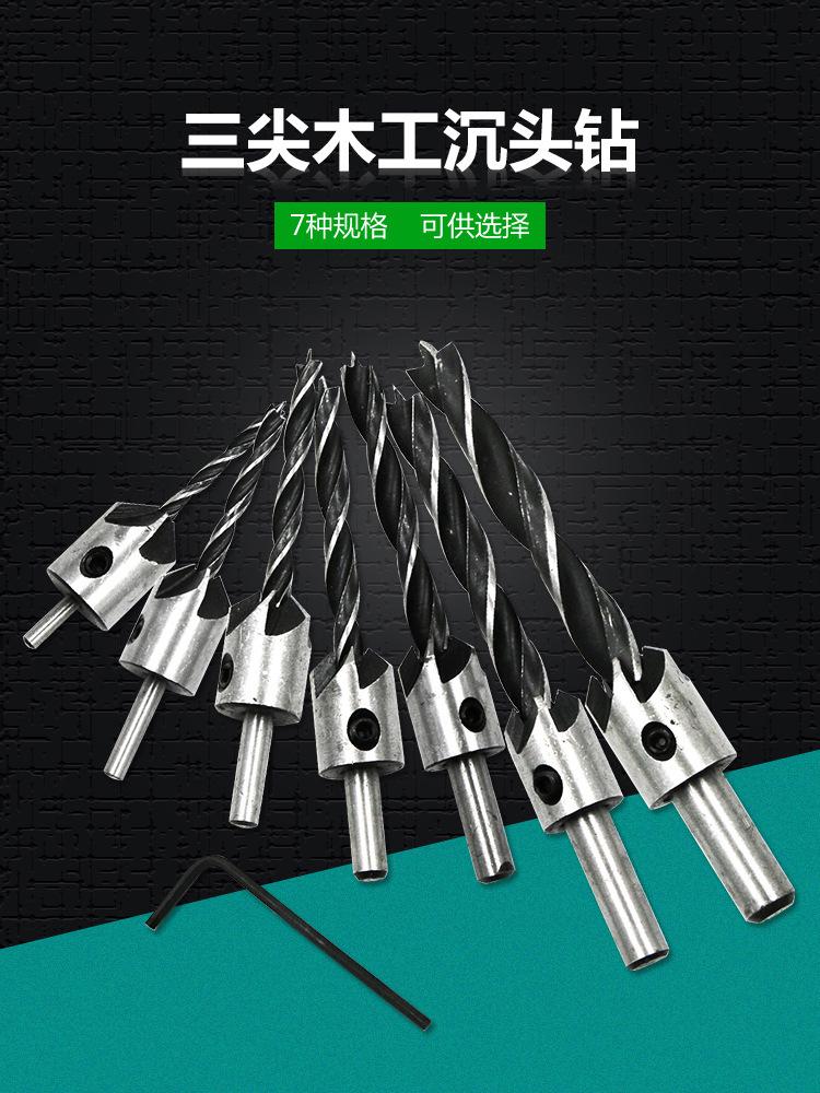 Broca escariadora para biselado de carpintería, broca guía, broca de acero de alta velocidad, broca avellanada de tres puntas de 3-10 mm para carpintería