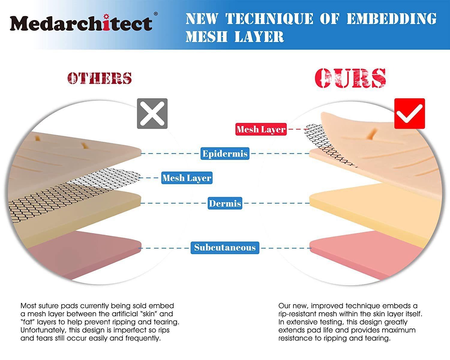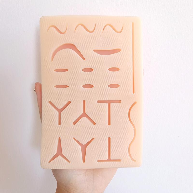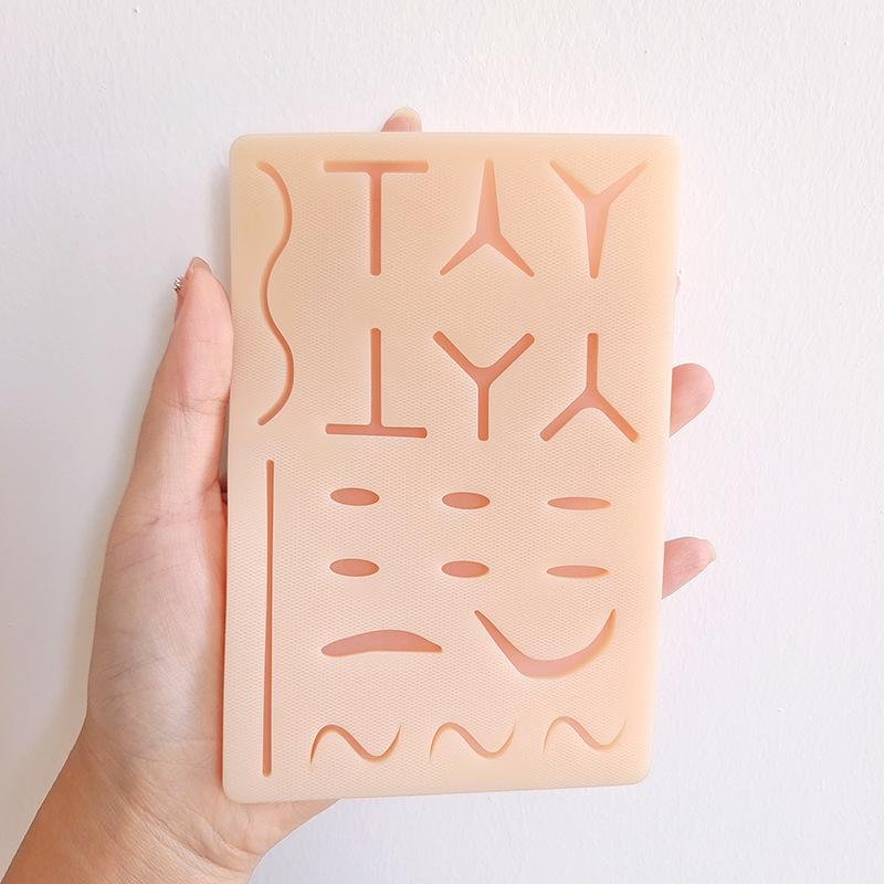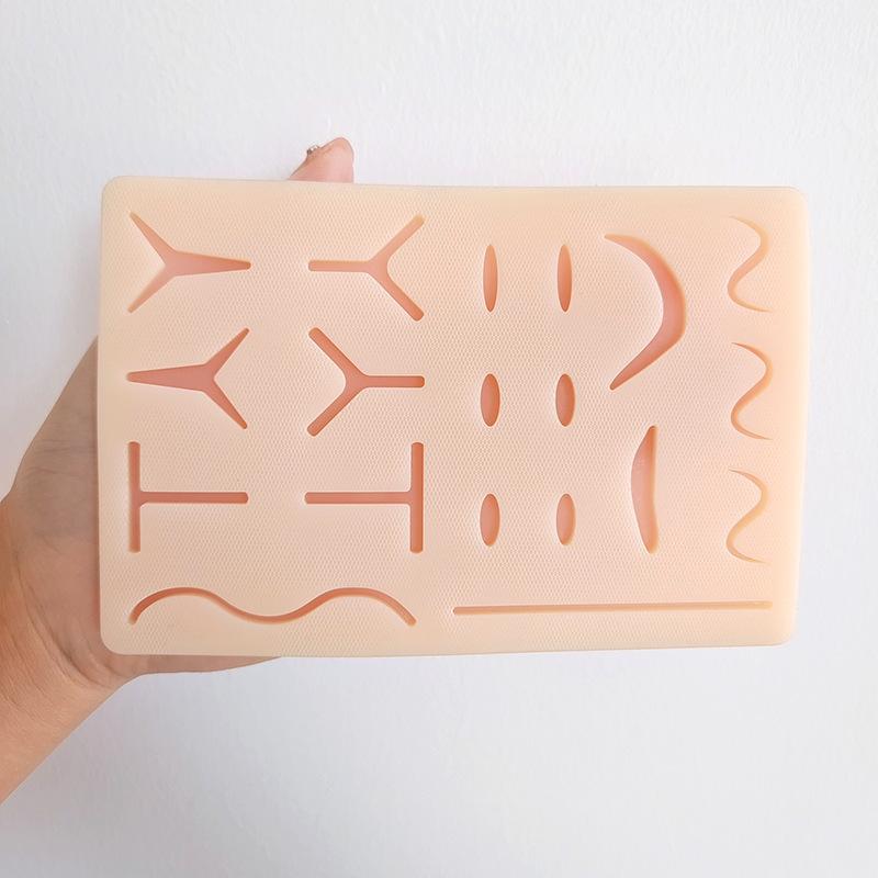 Almohadilla de práctica de sutura mejorada, reutilizable, de silicona, para entrenamiento médico, modelo de piel con 19 heridas, para práctica médica.