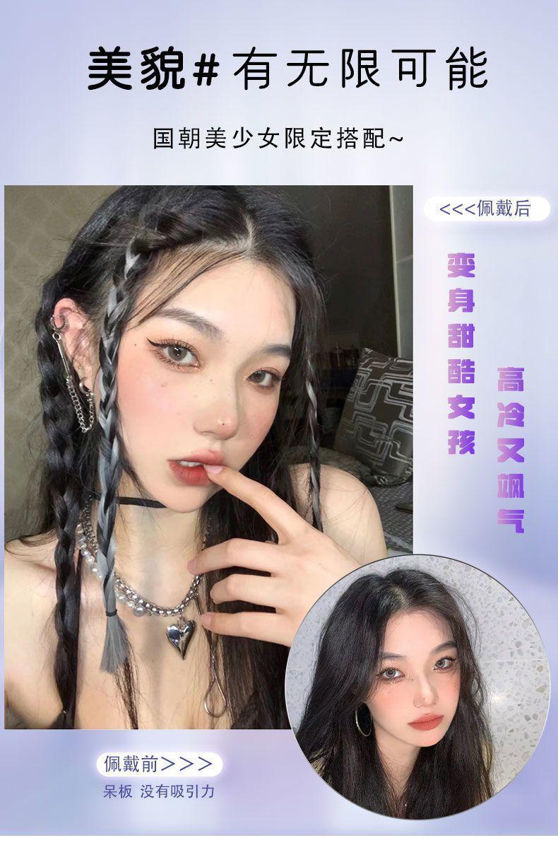 [brown and black gradient gray] dirty braid hanging ear dyeing