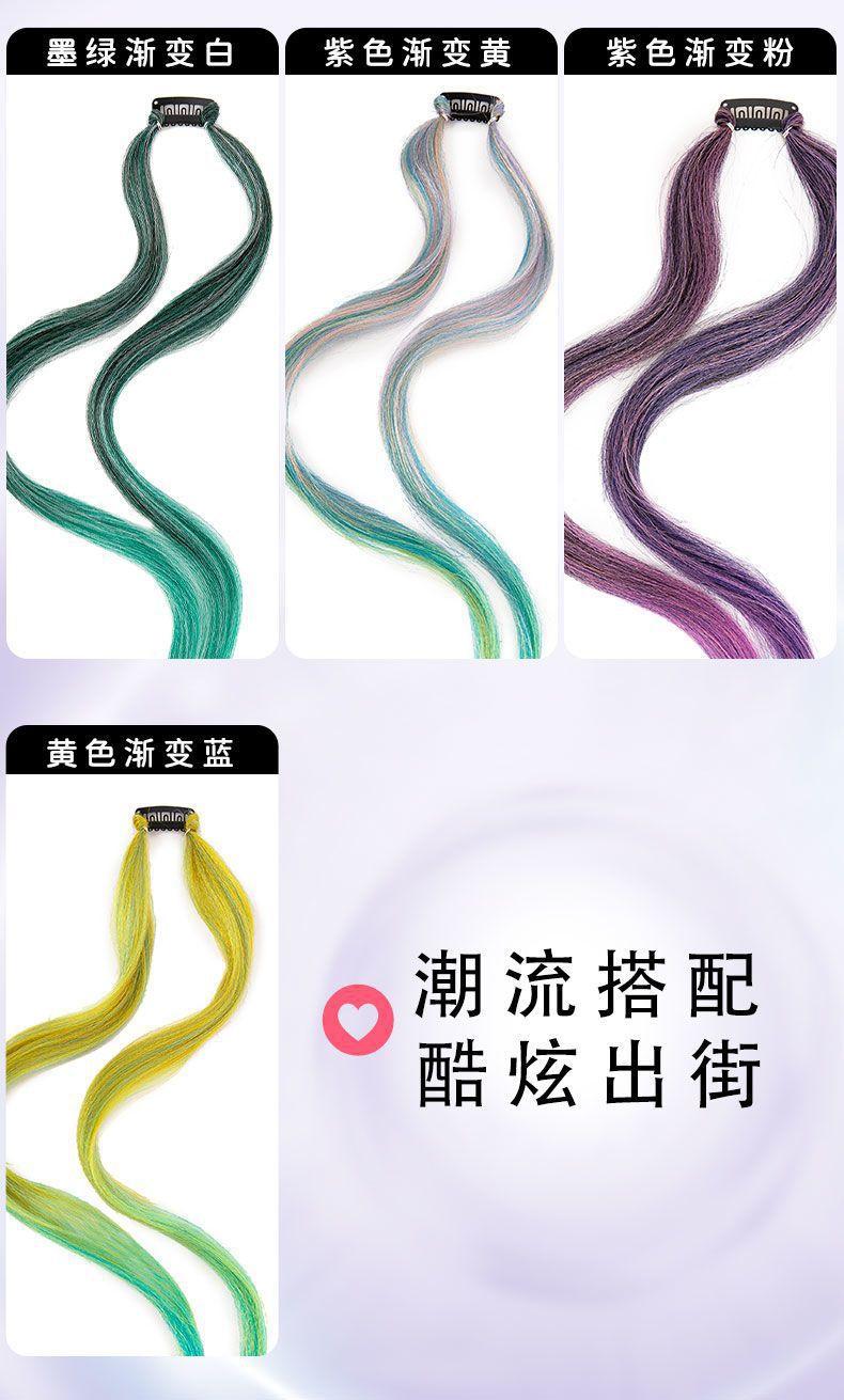 [dark green gradient green] dirty braid hanging ear dyeing, [dark purple gradient white] dirty braid hanging e...