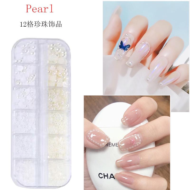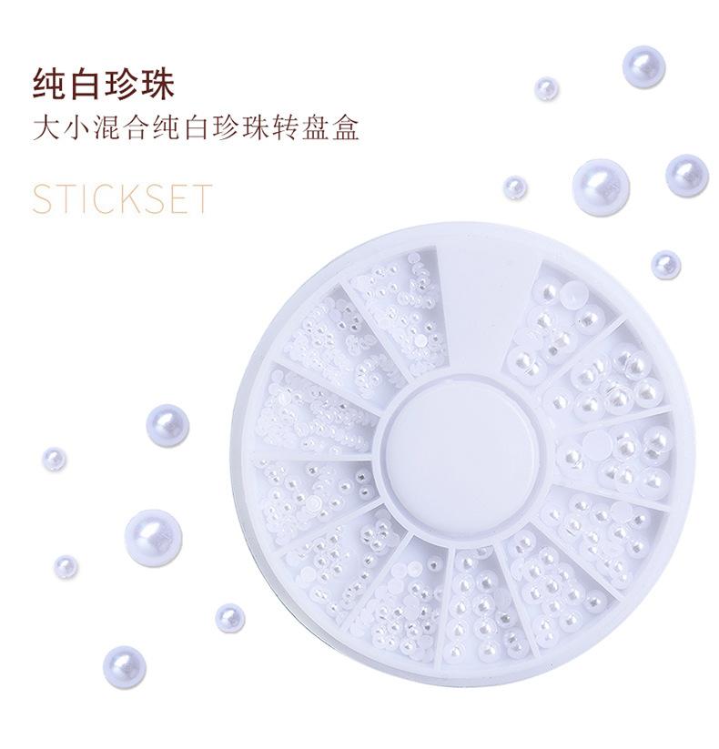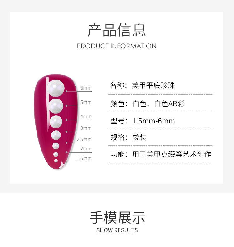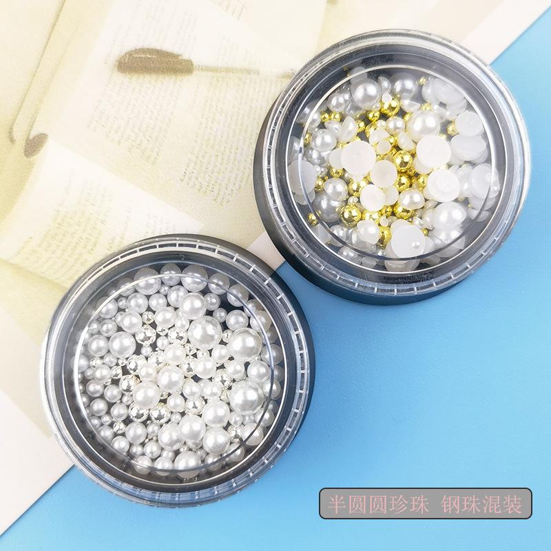 Manicura Estilo Japonés Blanco Roto Blanco Fondo Plano Joyería de Perlas Semicircular Estéreo Redondo Tamaño Mixto Manicura Decoración DIY