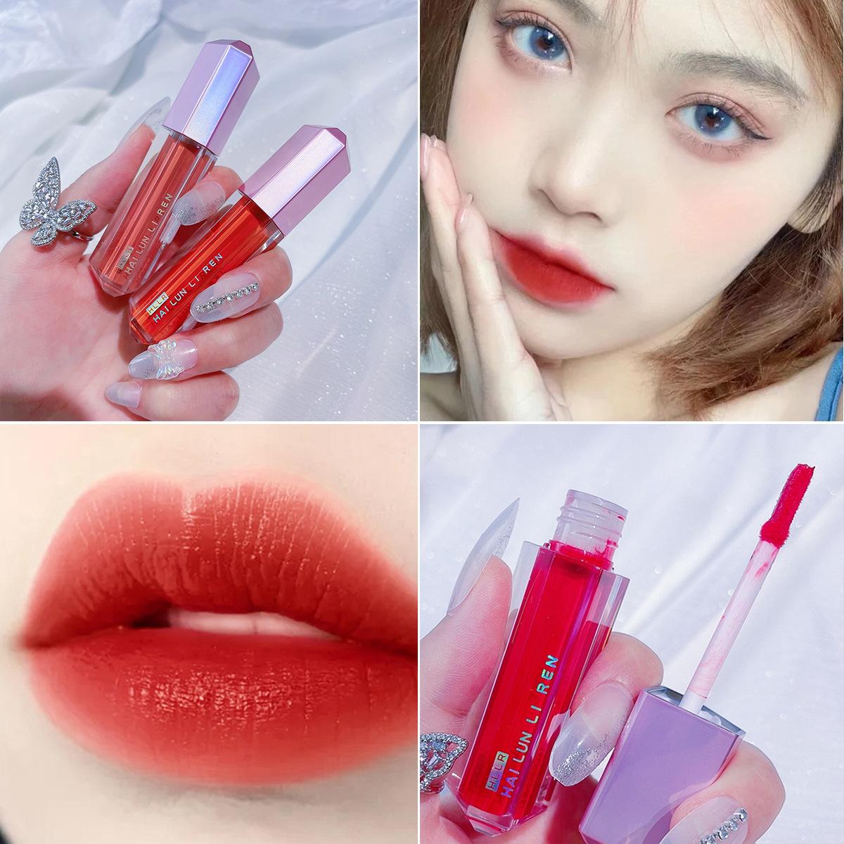La transmisión en vivo de Helen Beauty, el maquillaje de labios con forma de triángulo de diamante, mate, terciopelo suave, no mancha la taza. |