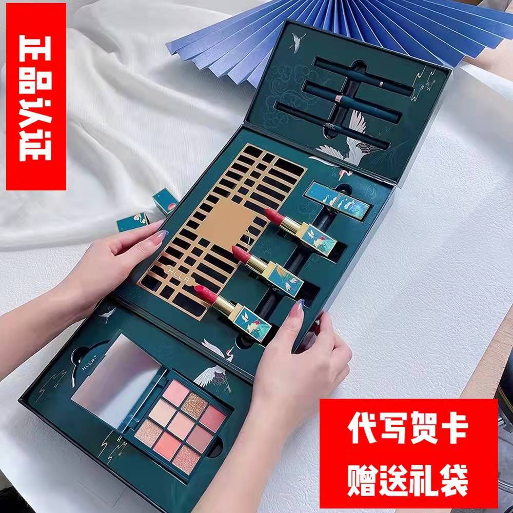 Transmisión en vivo Helen Beauty caja de regalo de maquillaje verde oscuro sombra de ojos lápiz labial tallado juego de maquillaje de diez piezas regalo de vacaciones |