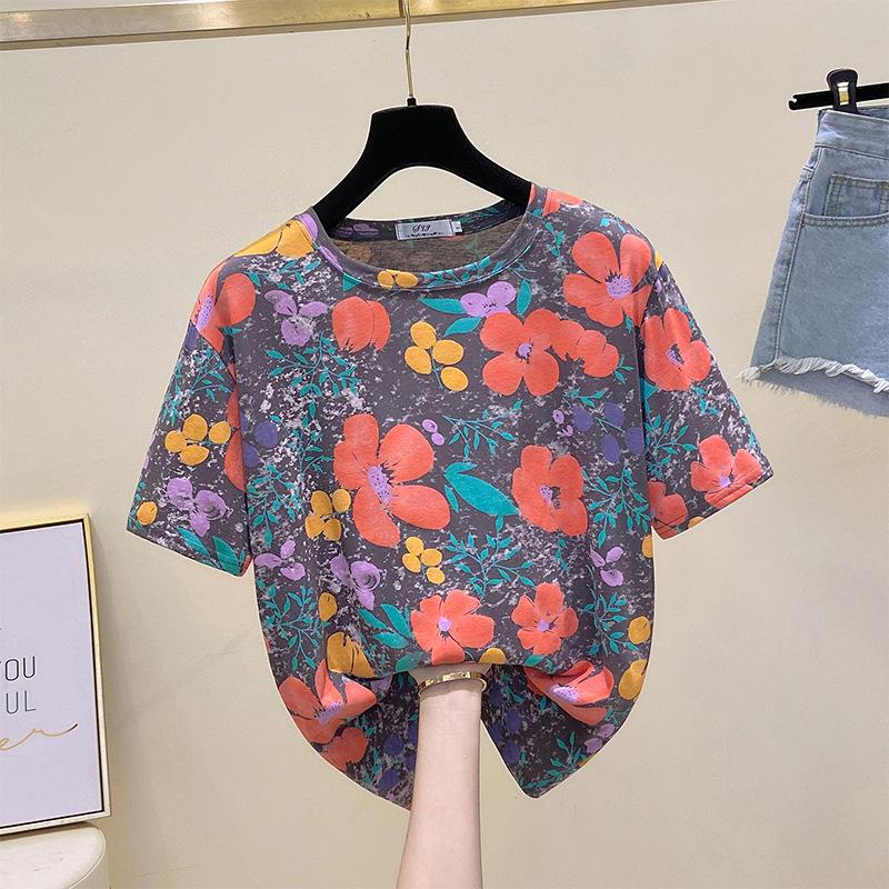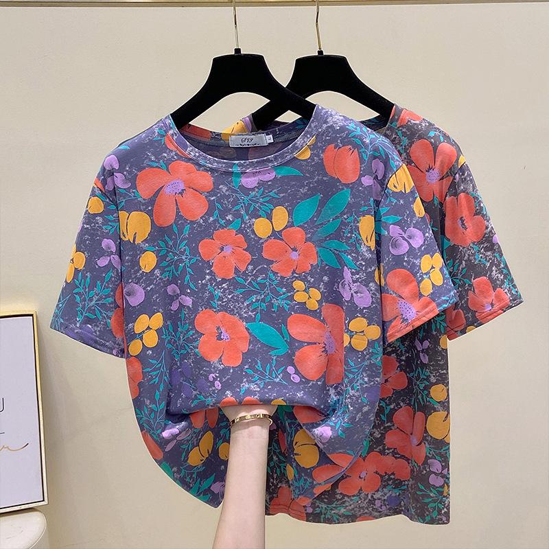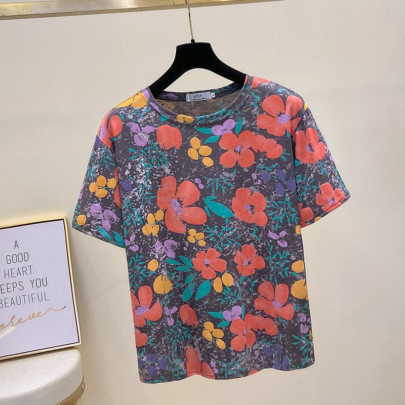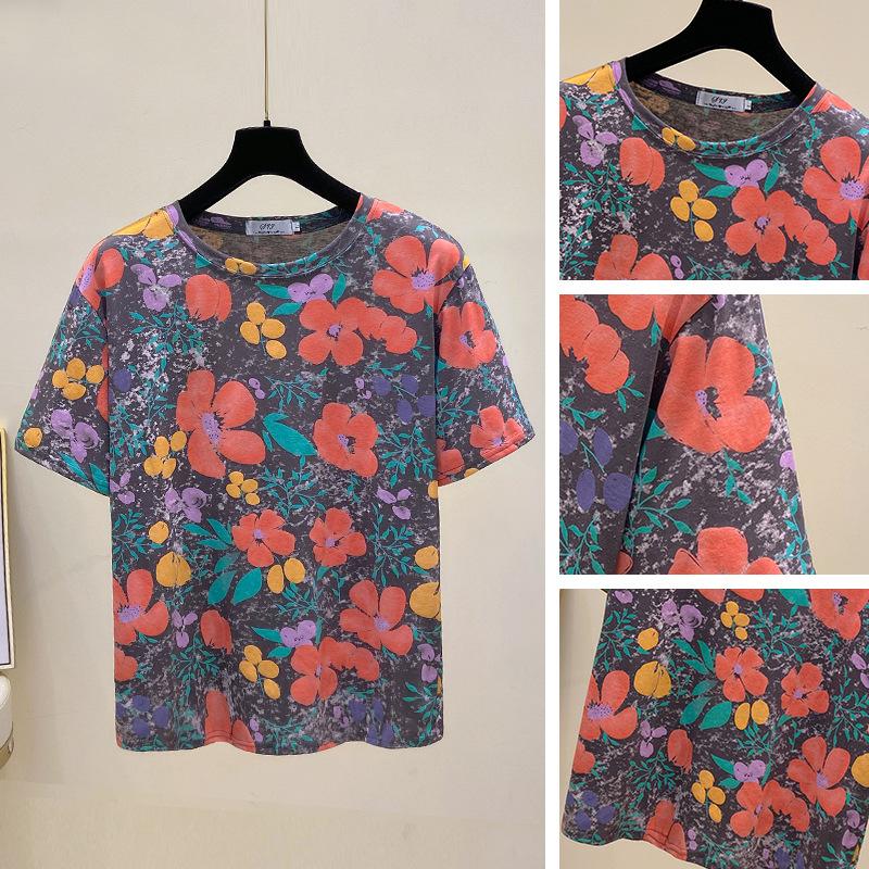Playera de Manga Corta para Mujer de Talla Grande 2024 Verano Estilo Coreano Nueva Estampada Holgada con Aspecto Adelgazante Moda Versátil Algodón para Mujer