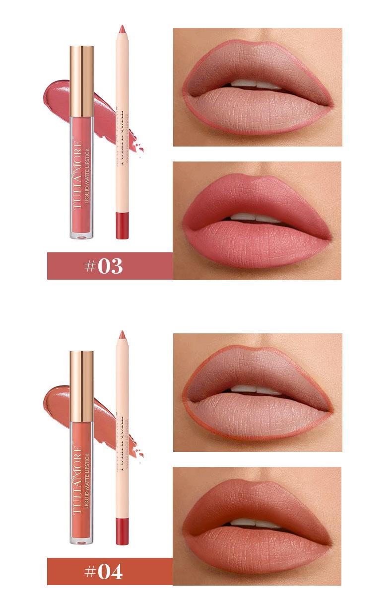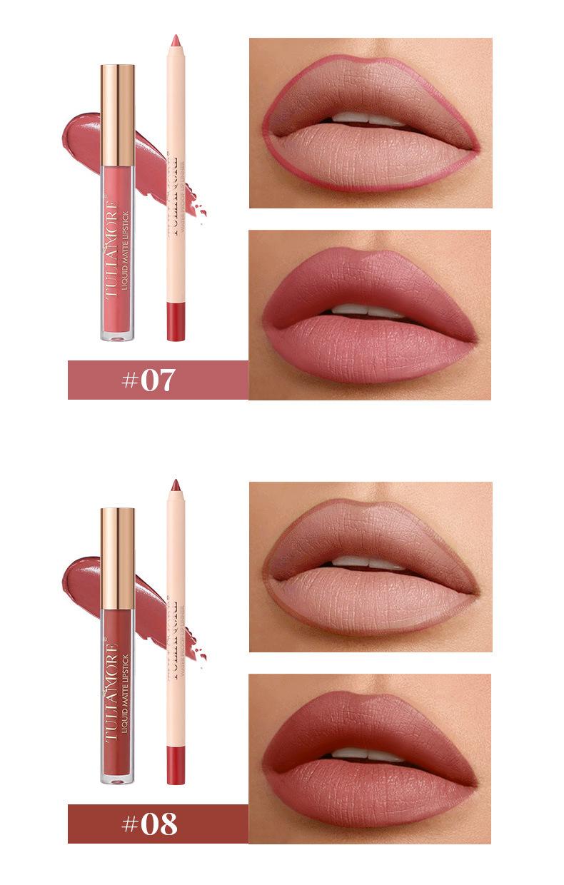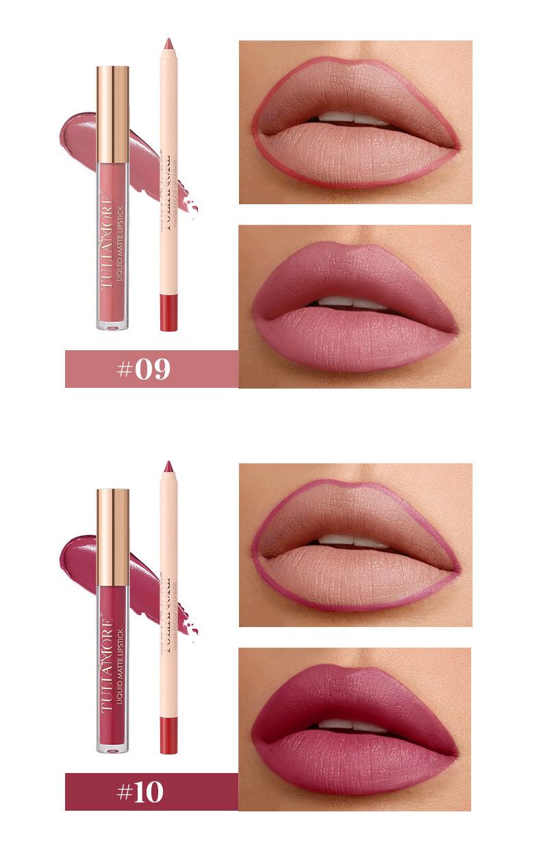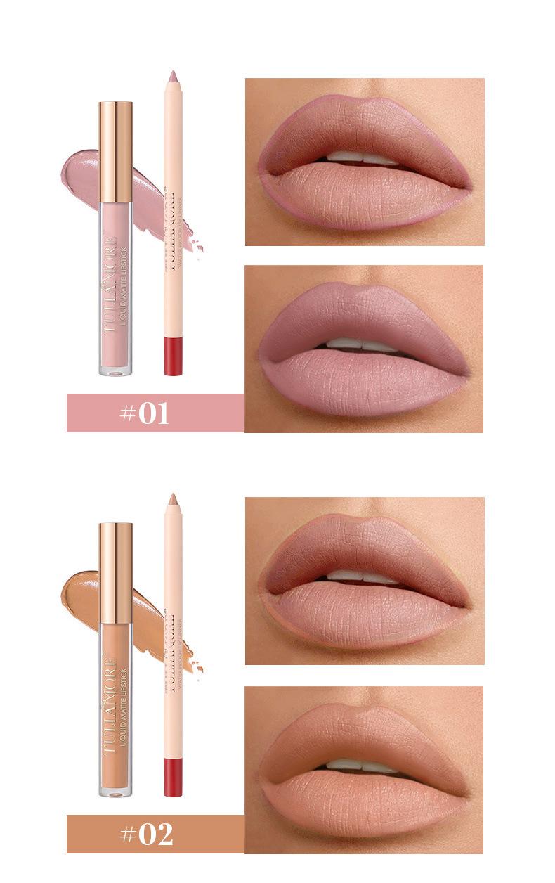 Brillo Labial Mate Transfronterizo Set de Delineador de Labios Vaso Antiadherente No se Desvanece Resistente al Agua Delicado