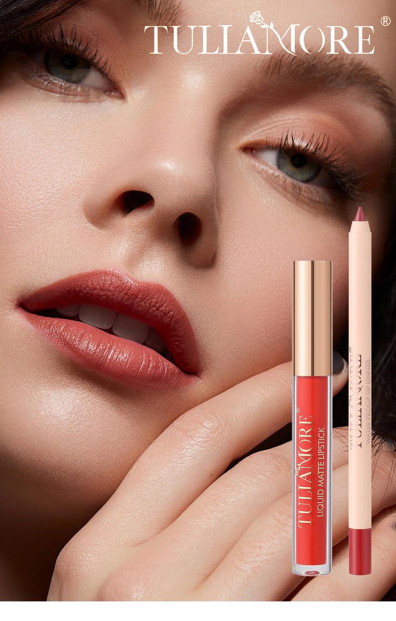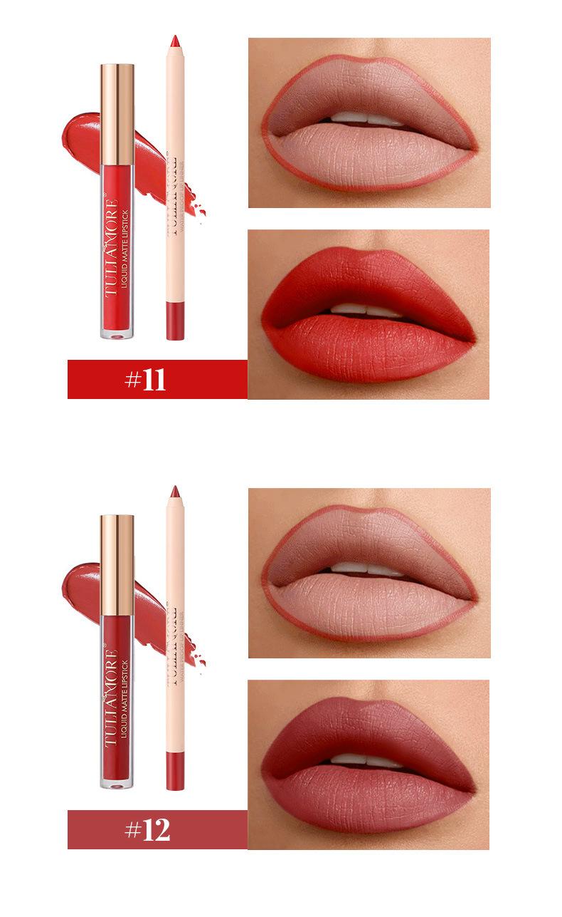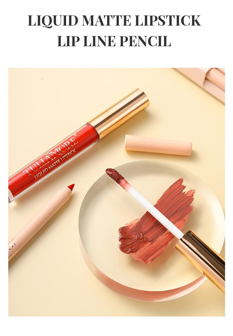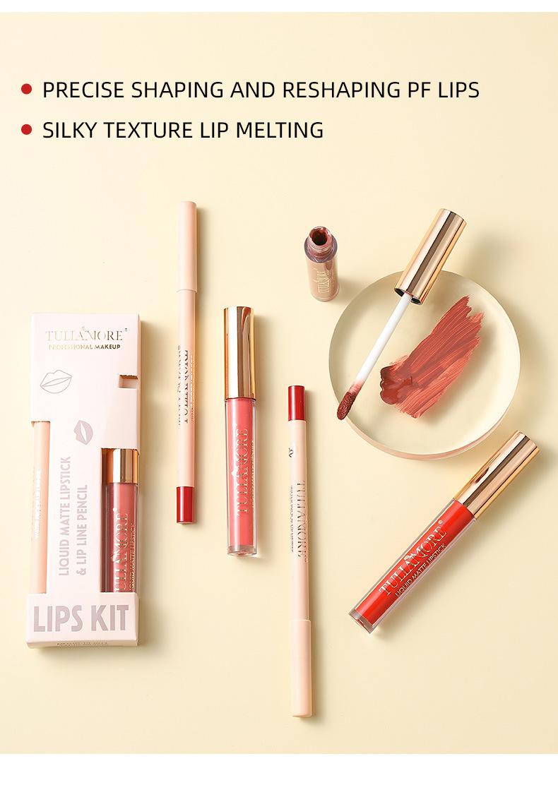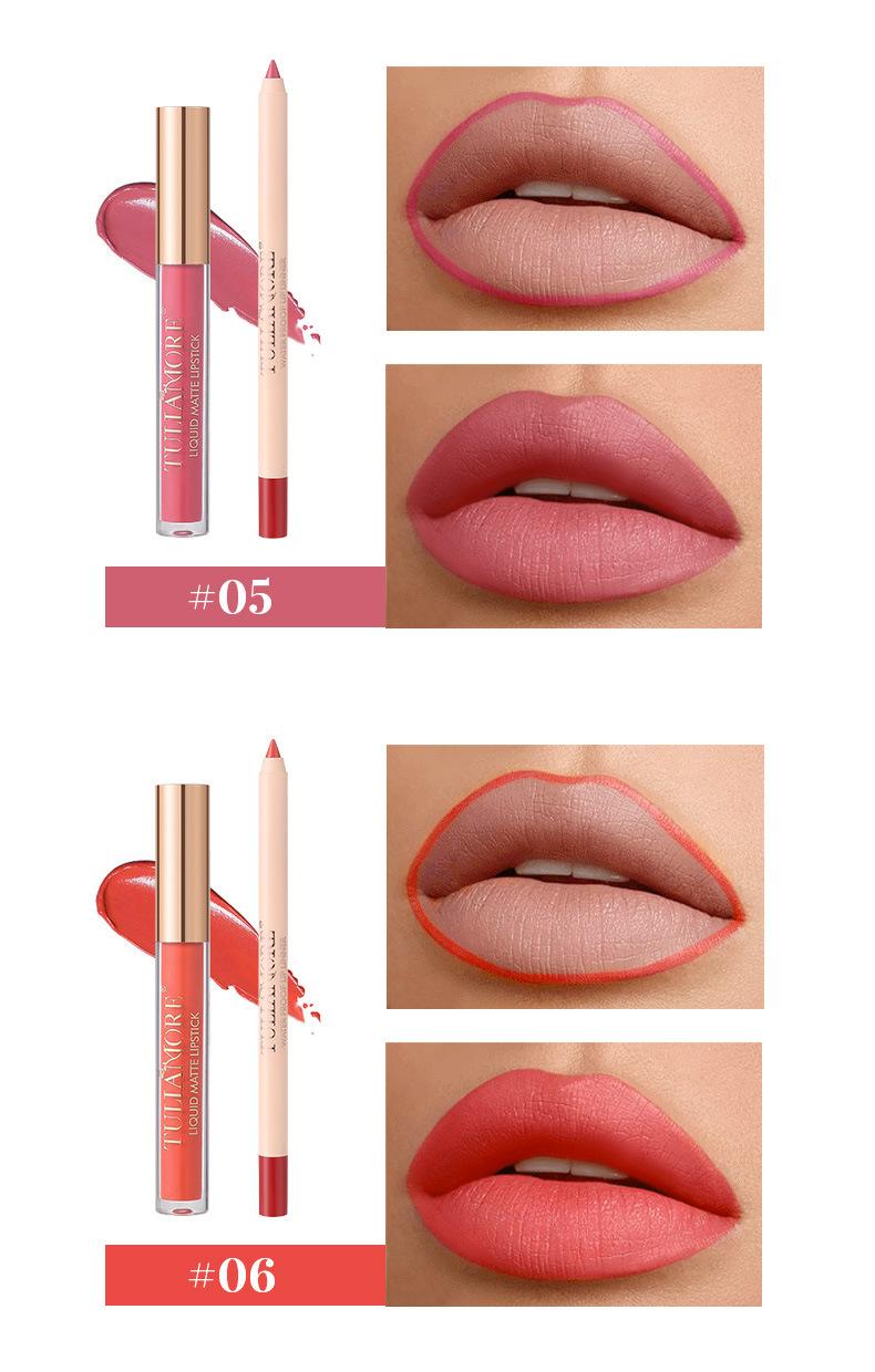 Brillo Labial Mate Transfronterizo Set de Delineador de Labios Vaso Antiadherente No se Desvanece Resistente al Agua Delicado