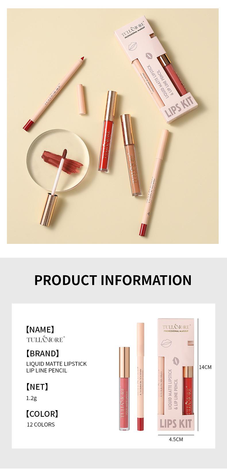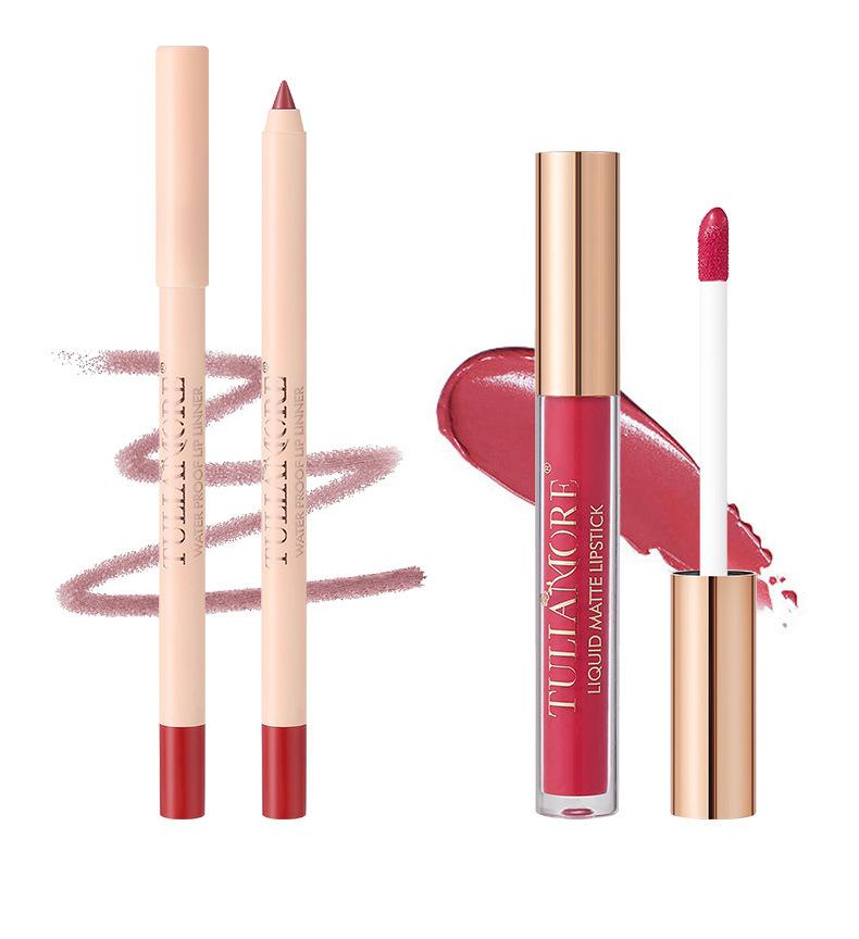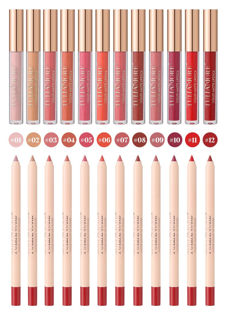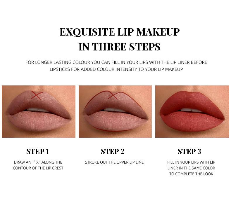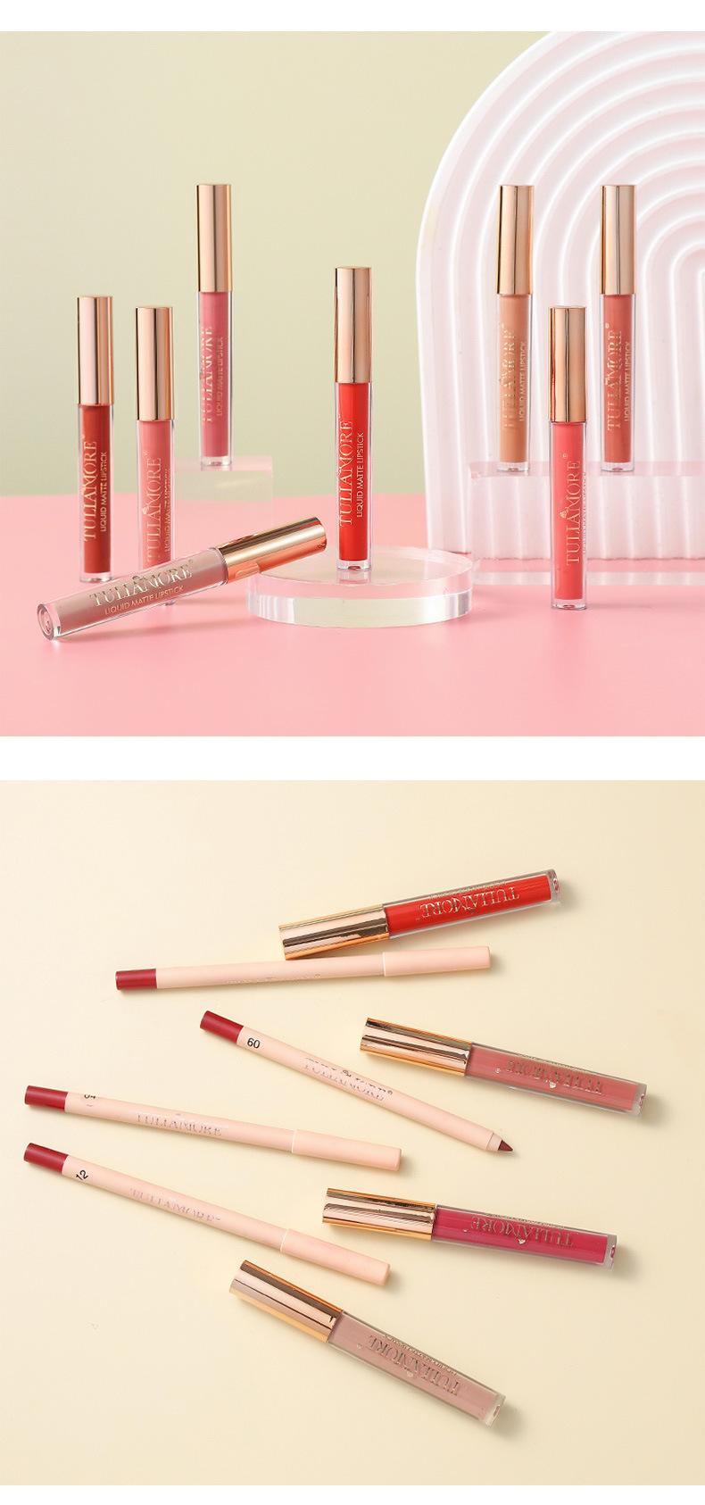Brillo Labial Mate Transfronterizo Set de Delineador de Labios Vaso Antiadherente No se Desvanece Resistente al Agua Delicado