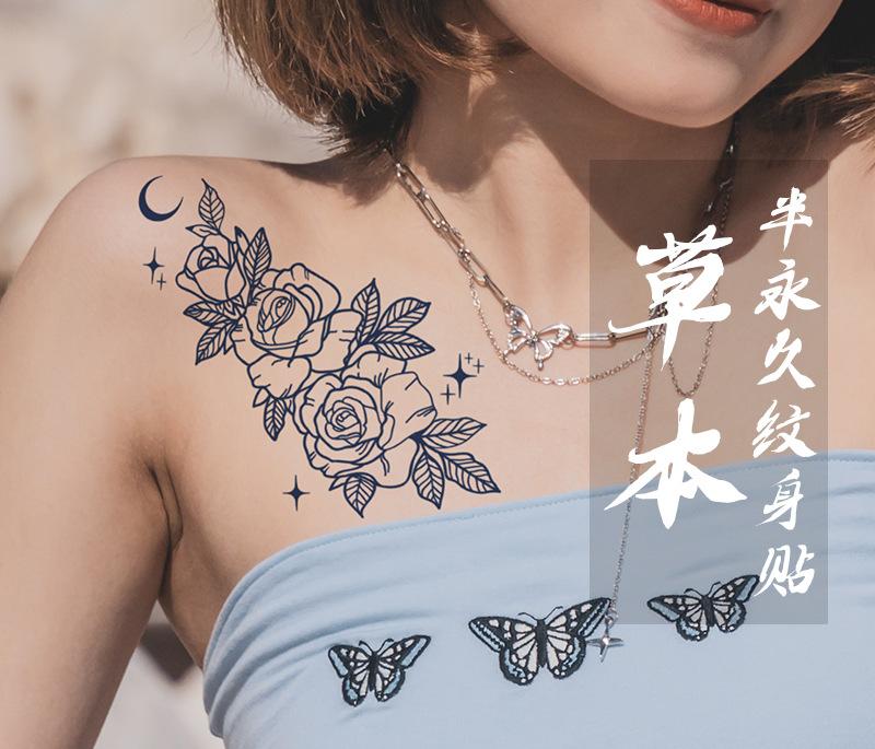 Pegatinas de tatuaje de hierbas, tatuaje semipermanente de plantas, resistente al agua, jugo, exclusivas transfronterizas, venta al por mayor, pegatinas de tatuaje de jugo.