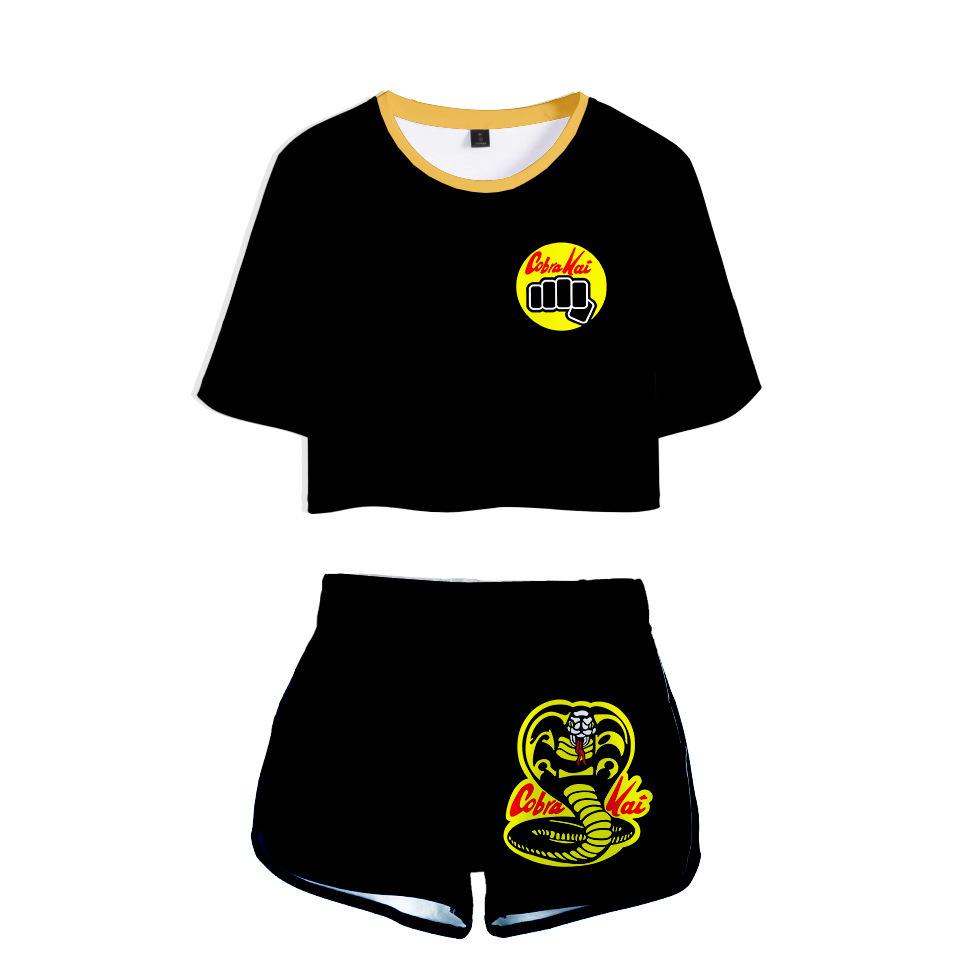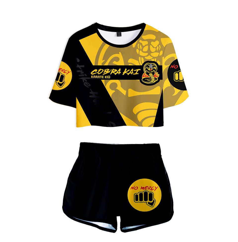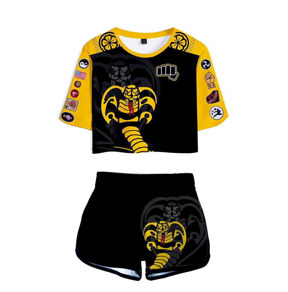 Traje de ombligo sexy de manga corta con impresión digital 3D de la serie Karate Kid de verano 2022