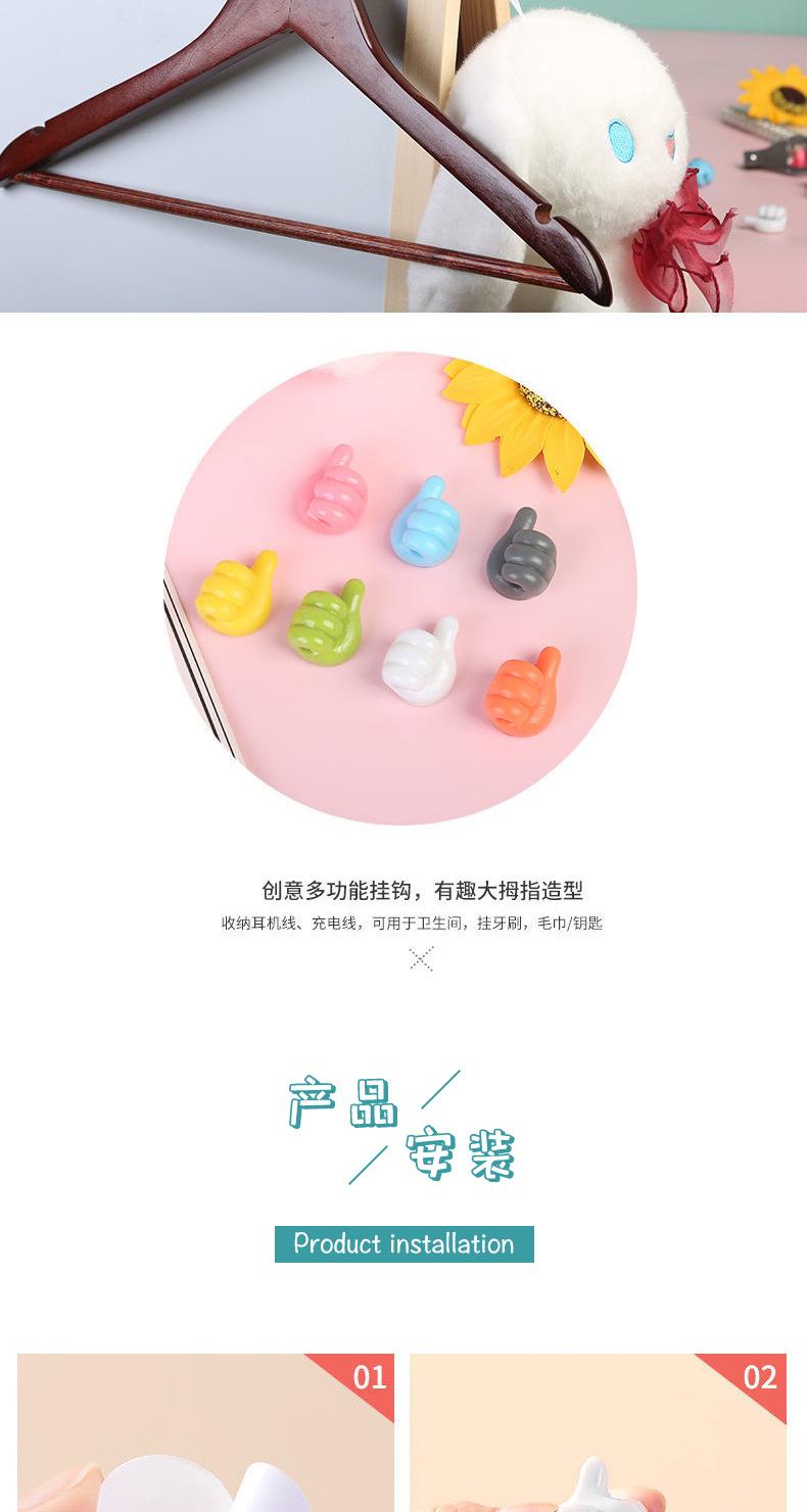 Gancho Creativo Multifuncional de Pulgar Gancho Adhesivo Lindo Sin Perforaciones ni Marcas para Baño y Sala de Estar Sujetador de Cable de Datos