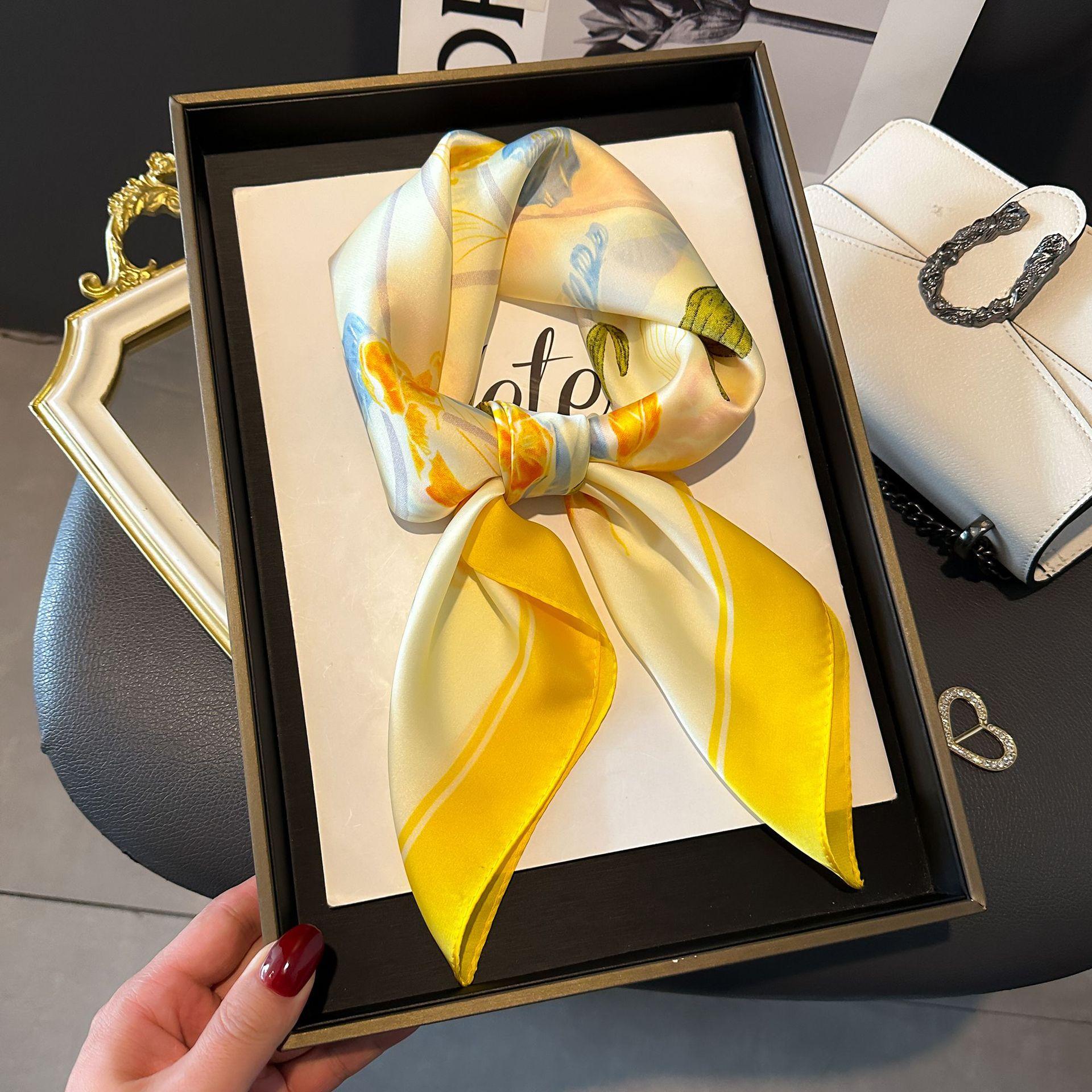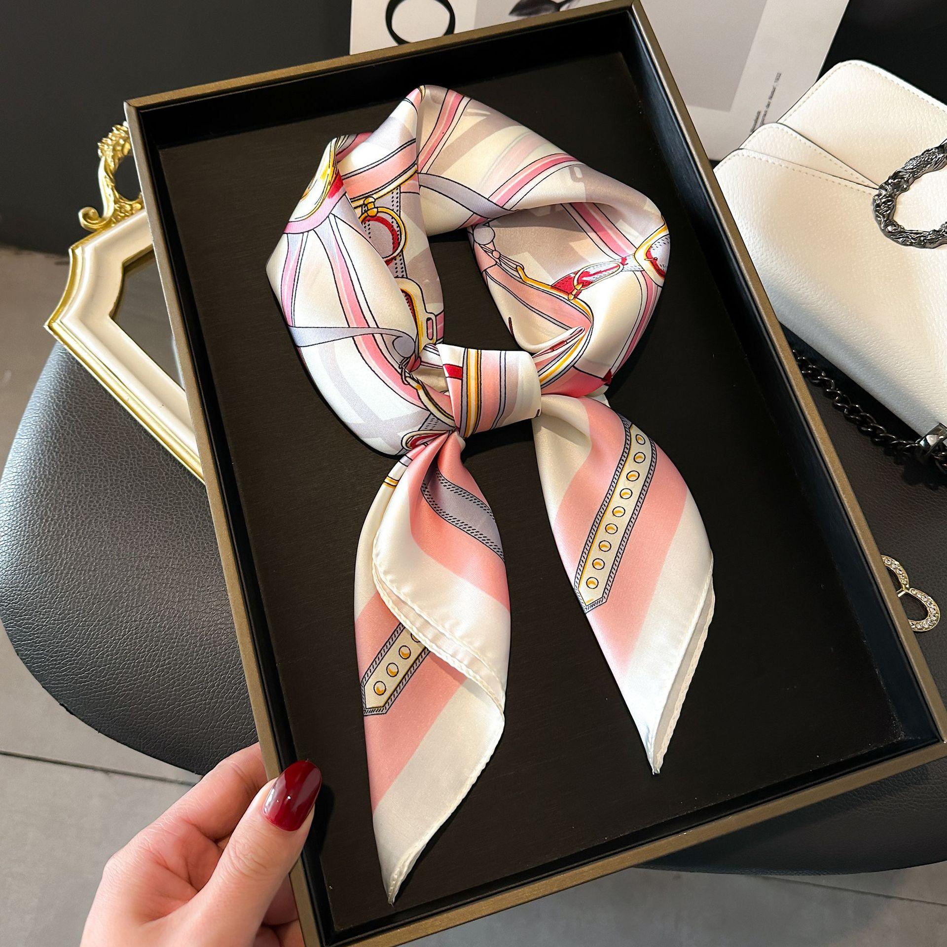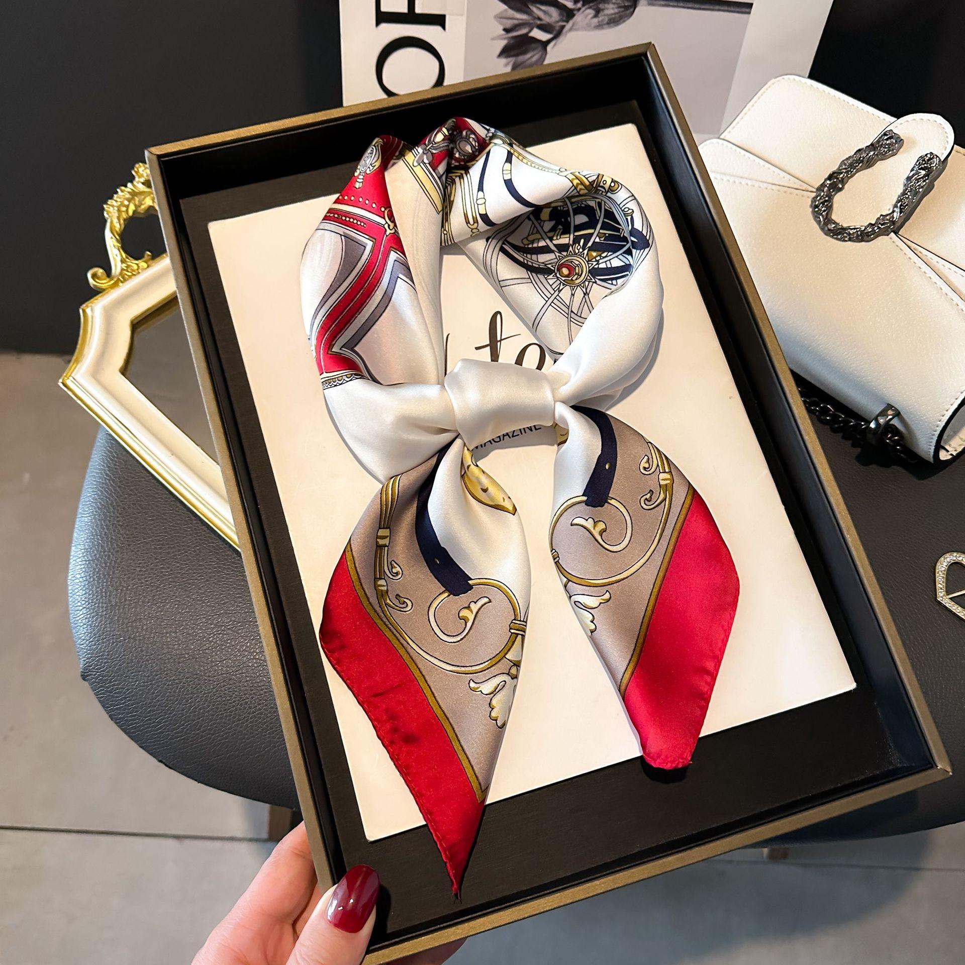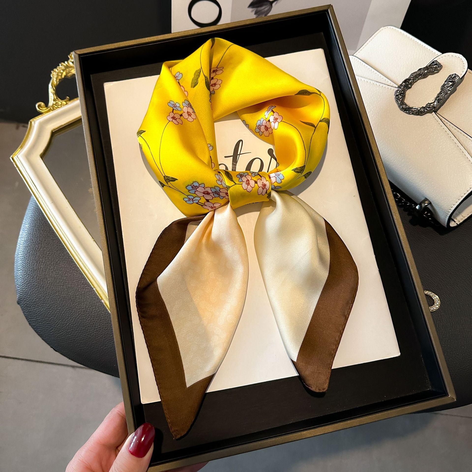 Bufanda de seda de nuevo estilo para mujer, moderna, combinable, de alta gama, cuadrada pequeña, estilo coreano, para proteger el cuello, estilo retro, para primavera y otoño.