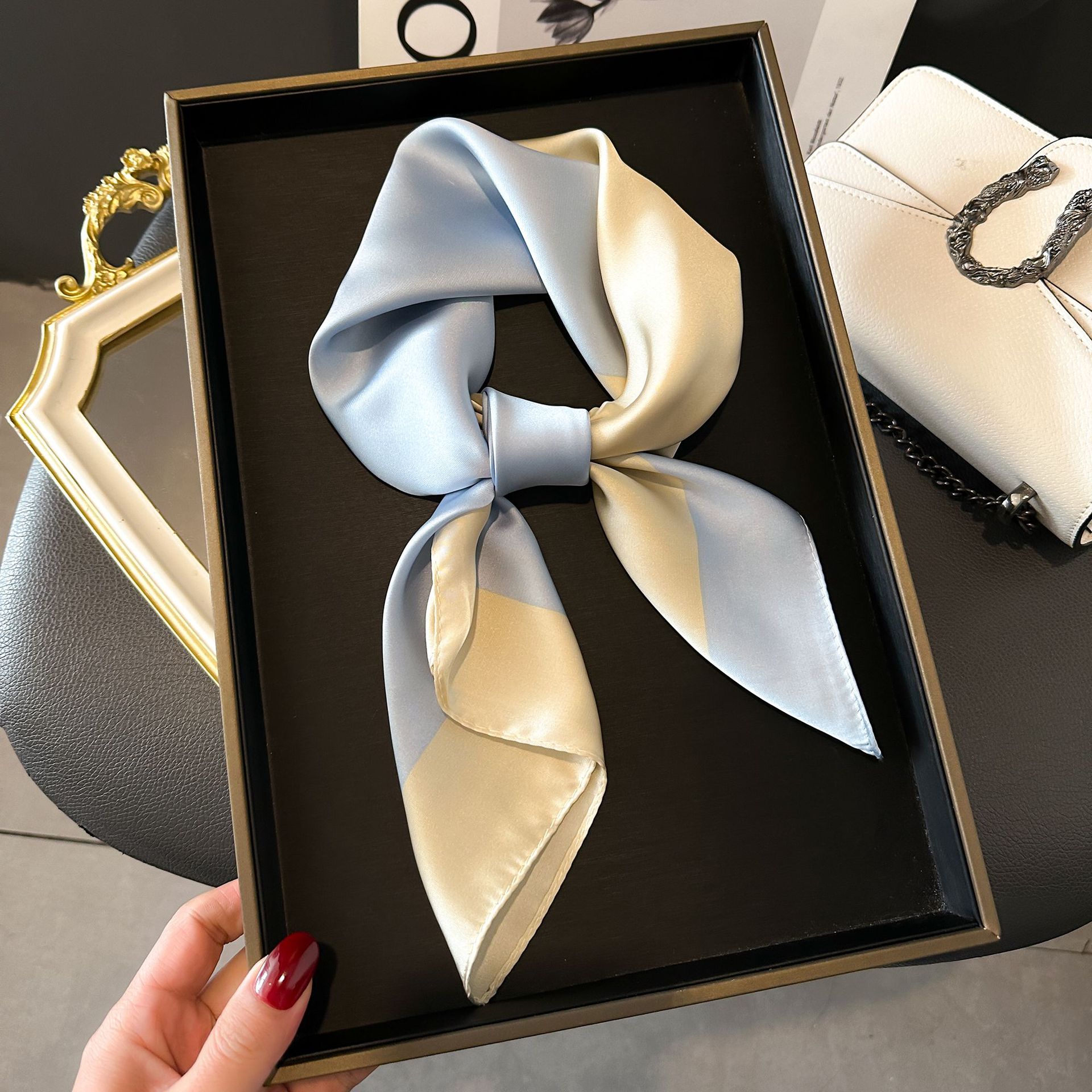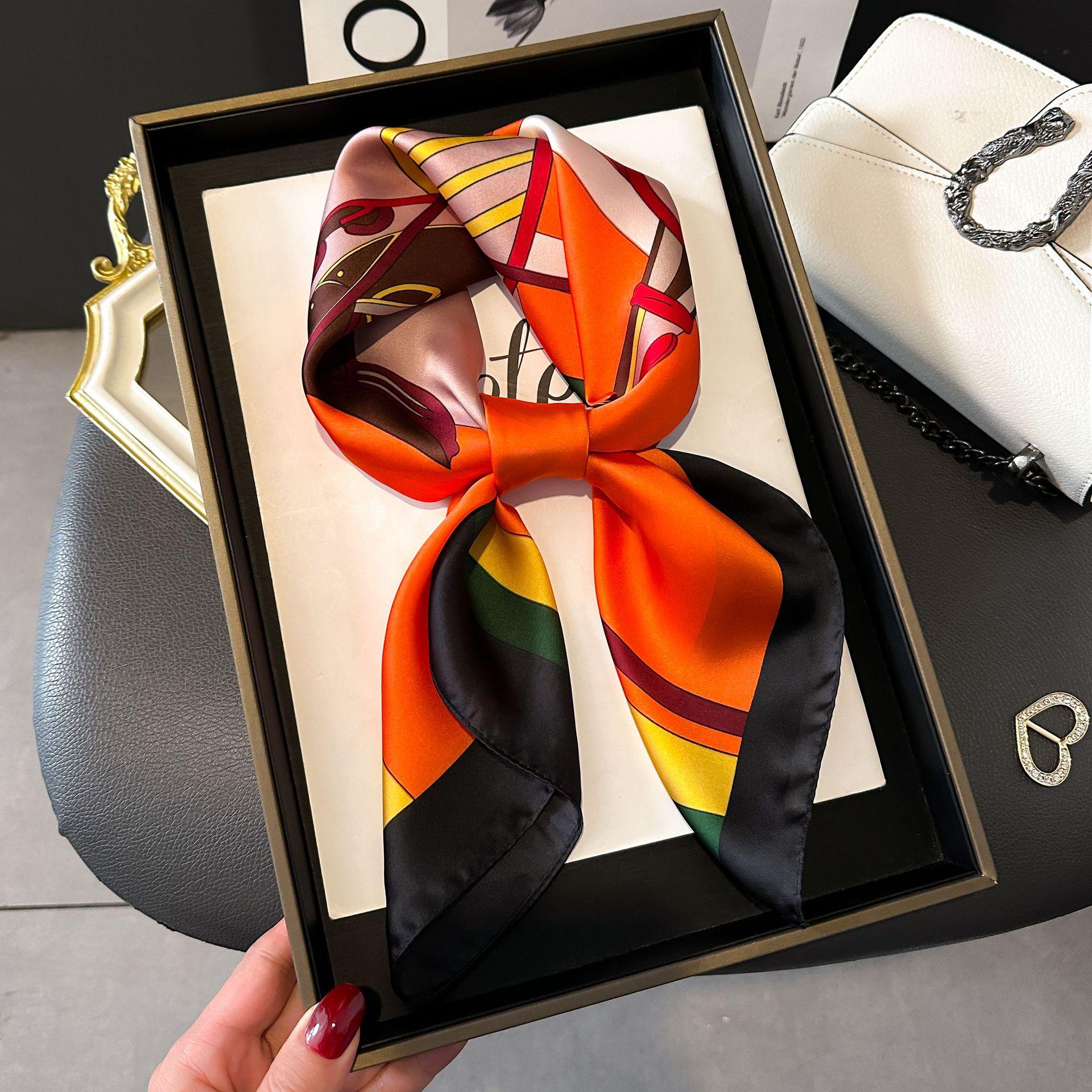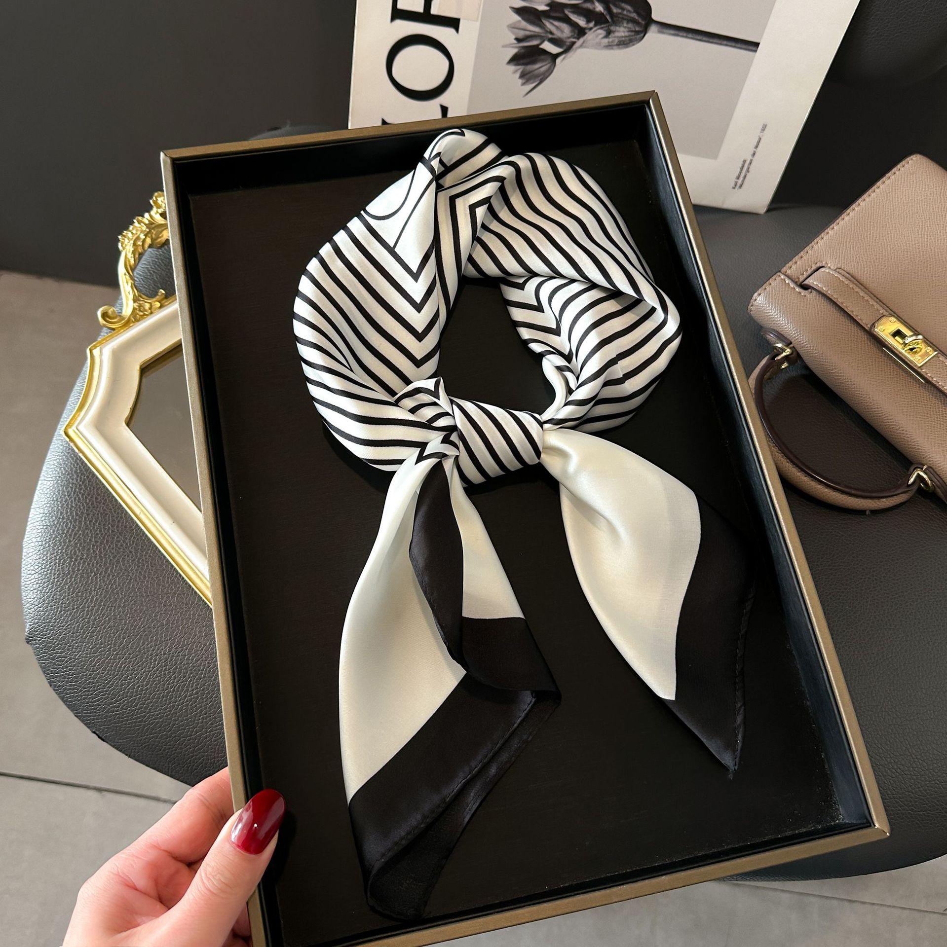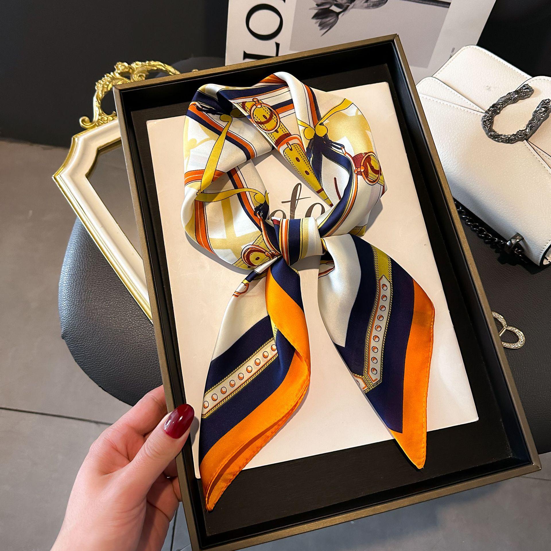 Bufanda de seda de nuevo estilo para mujer, moderna, combinable, de alta gama, cuadrada pequeña, estilo coreano, para proteger el cuello, estilo retro, para primavera y otoño.