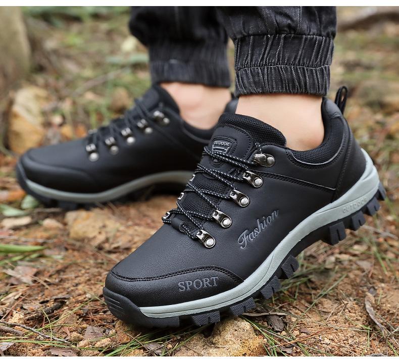 Zapatos casuales para hombre zapatos de senderismo para exteriores resistentes al desgaste antideslizantes de corte bajo superficie de cuero impermeables zapatilla de senderismo todoterreno para hombre transfronteriza
