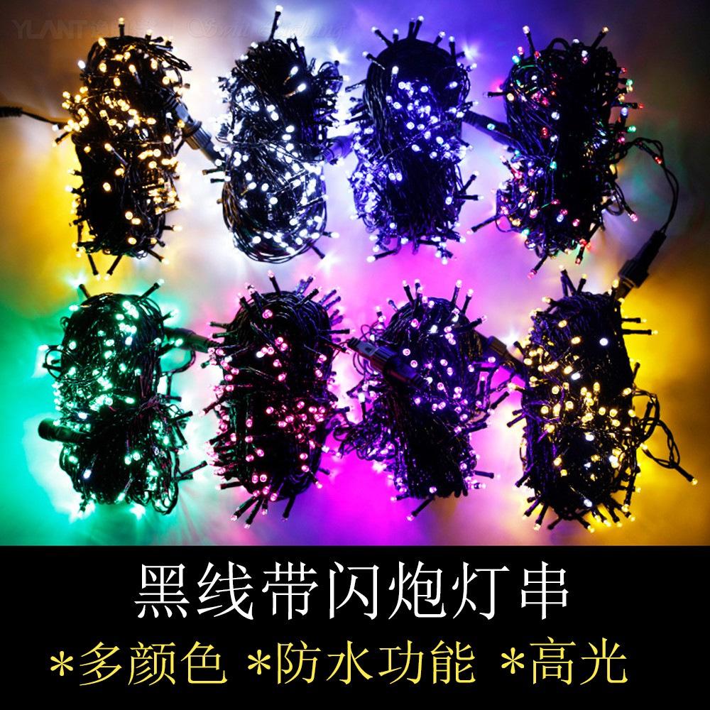 Cadena de luces LED de línea negra con bombillas intermitentes, luces de colores, cadena de luces intermitentes llena de estrellas, decoración para acampar en interiores y exteriores, fiesta de Navidad