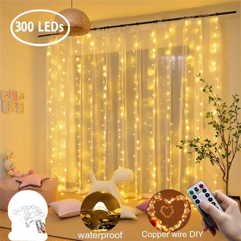 Cortina de luces de alambre de cobre de Amazon AliExpress, guirnalda de luces decorativas románticas de colores para habitación, control remoto por USB, foco de luz LED tipo carámbano.