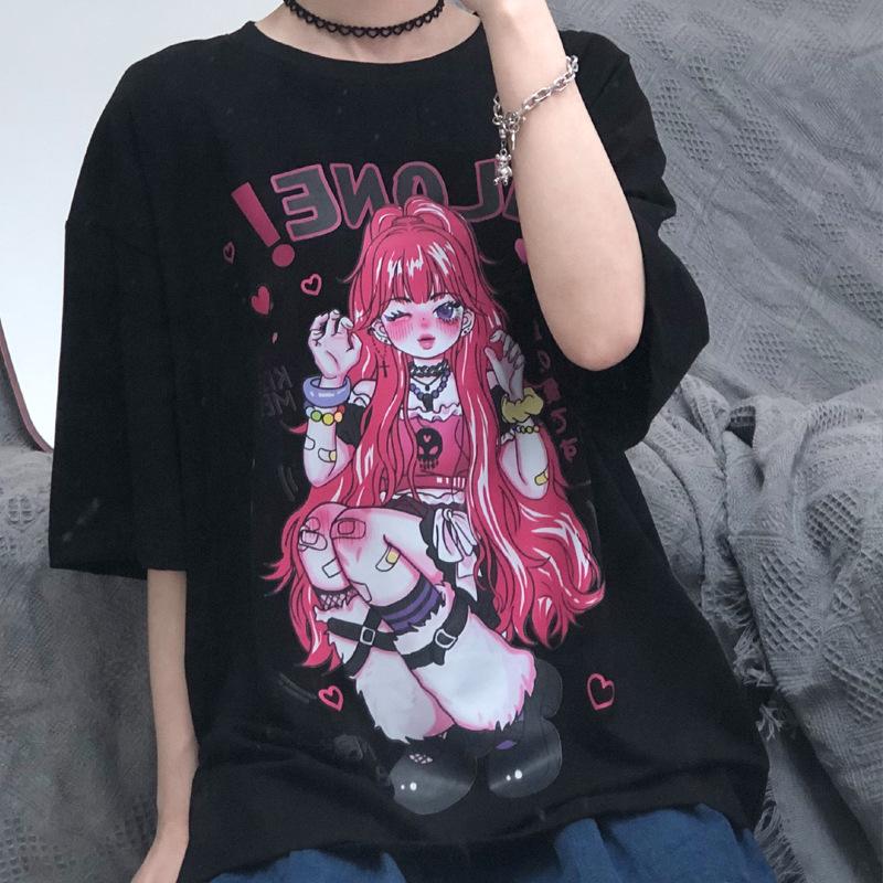 Moda Harajuku Camiseta de Mujer Dibujos Animados Verano Estampada Oversize