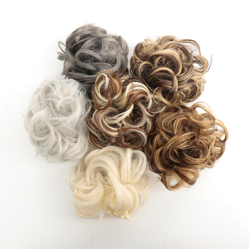 Peluca de moño con flores, aro para el cabello, pinza para sujetar, aro para el cabello rizado, bola para el cabello, desordenada, esponjosa, de seda de alta temperatura, redonda, bolsa para el cabello, peluca