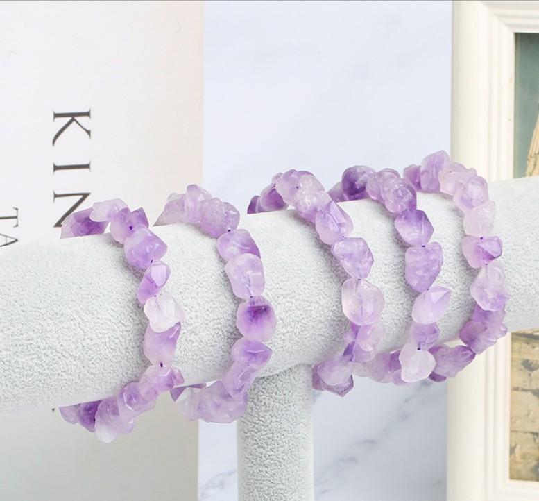 Venta caliente pulsera de flor de diente de amatista natural pulsera de anillo único de piedra amatista joyería con cuentas diy al por mayor