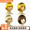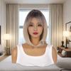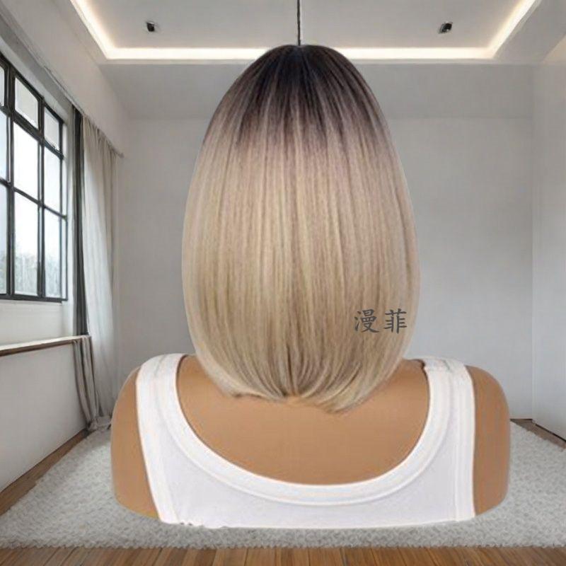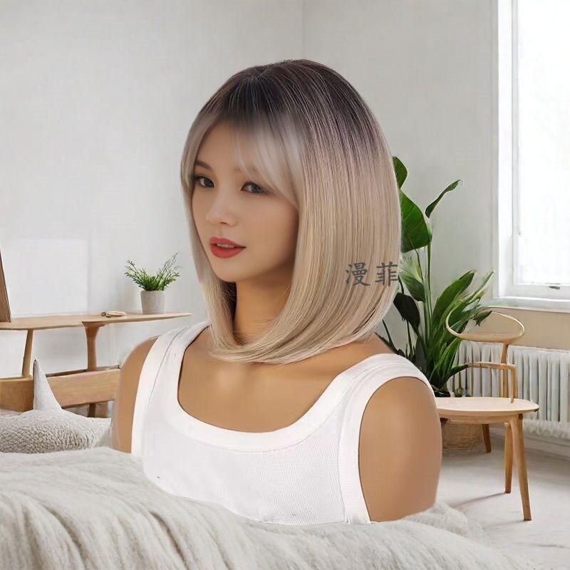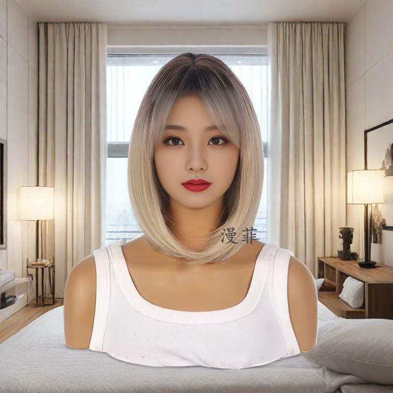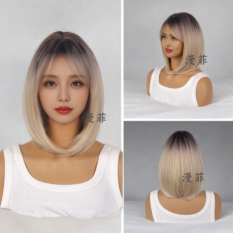 Peluca de fibra química con degradado platino, pelo corto y liso, estilo bobo, para cubrir toda la cabeza.