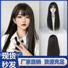 Peluca femenina de color, cabello largo y rizado, flequillo de aire, mecanismo de seda de alta temperatura, cubierta de peluca, mano rápida, temblores, suministro en vivo, fabricantes