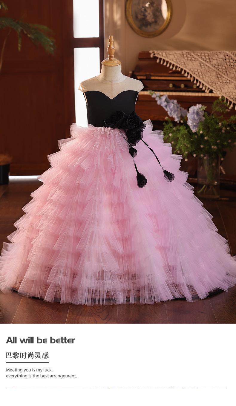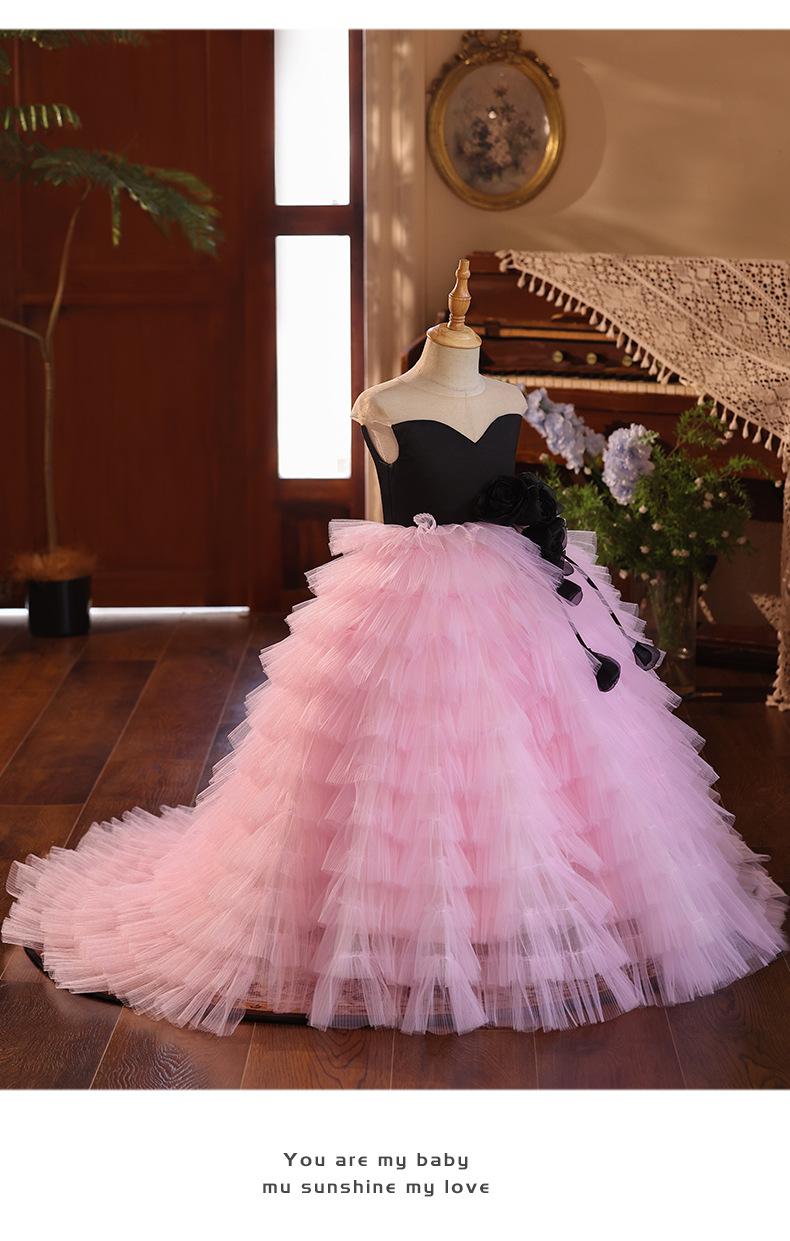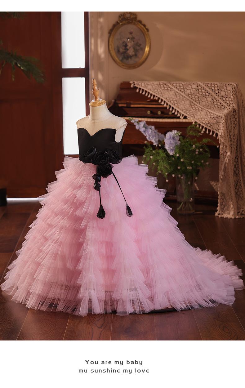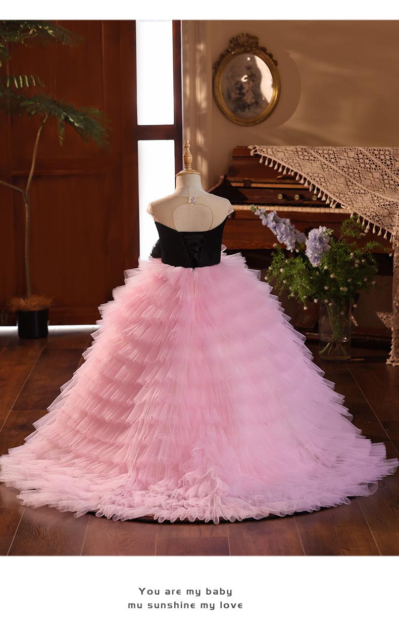 Vestido de niña ligero de lujo de nicho de alta gama para niños, vestido de princesa de cola de espectáculo, vestido largo de piano para niña de las flores de cumpleaños