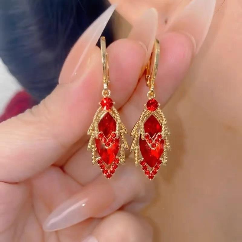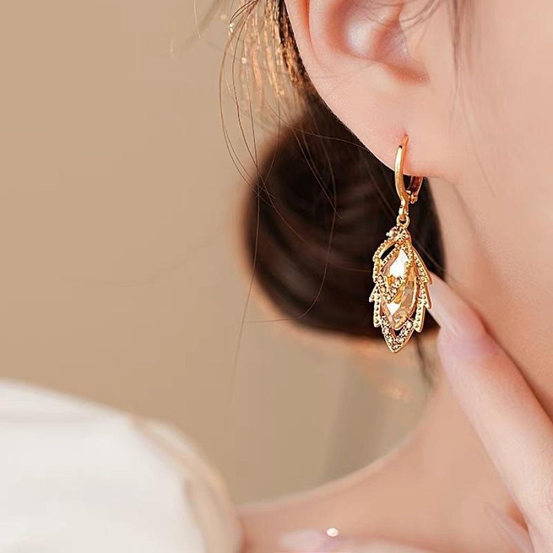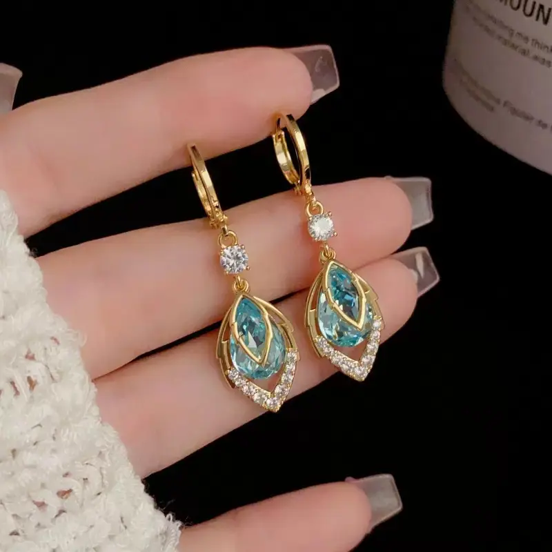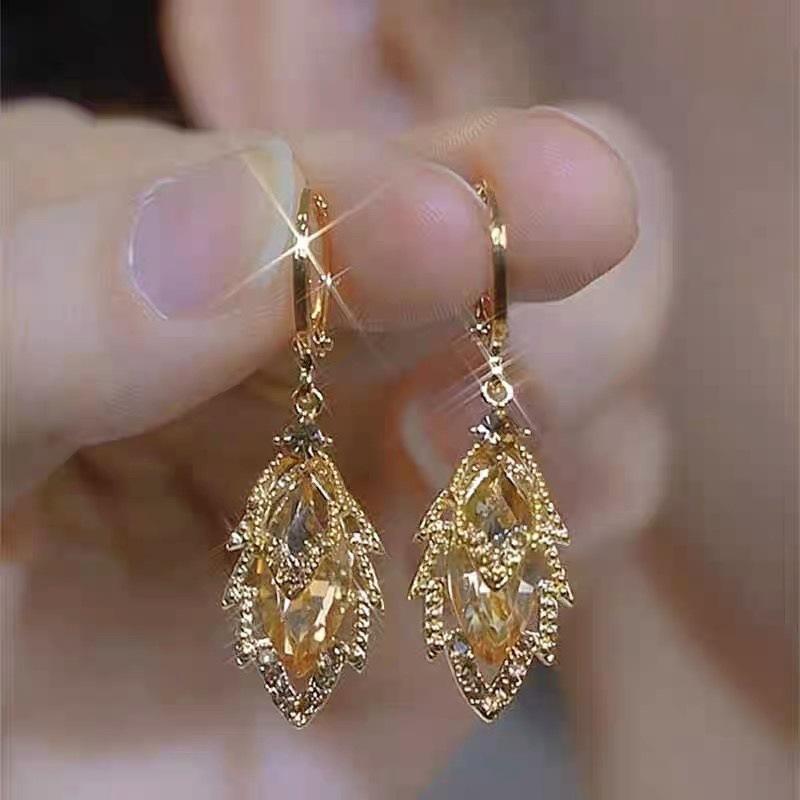 Pendientes elegantes de alta gama, ligeros, de lujo, con nicho simple, con borlas de hojas de circonita, para mujer, combinables con todo.