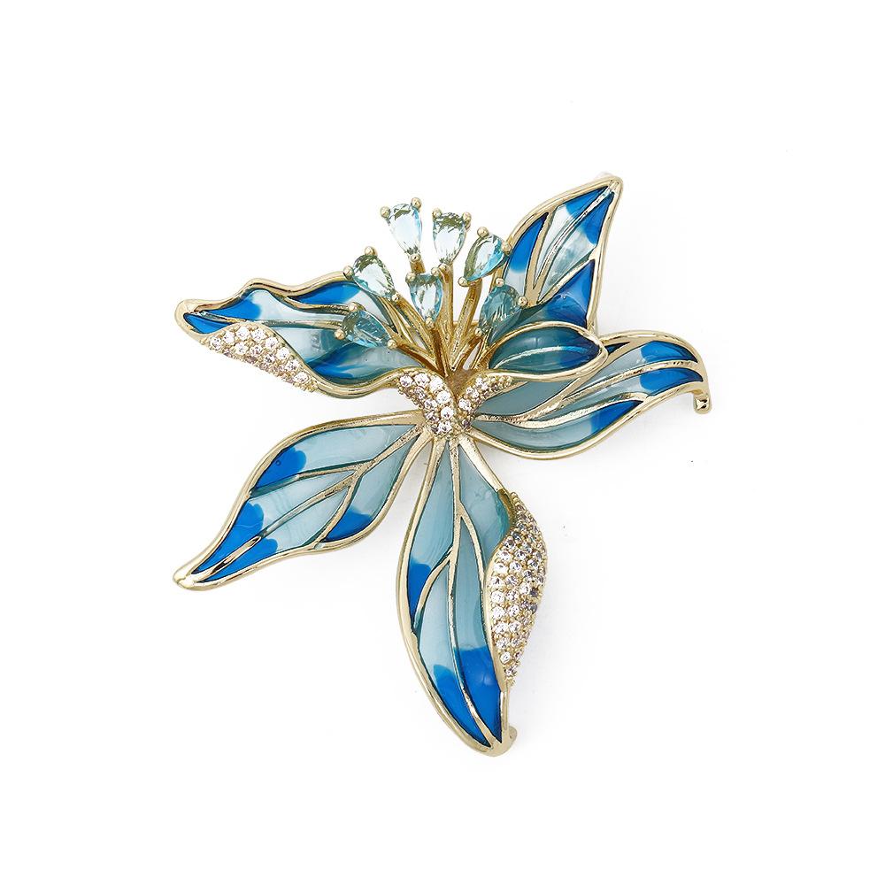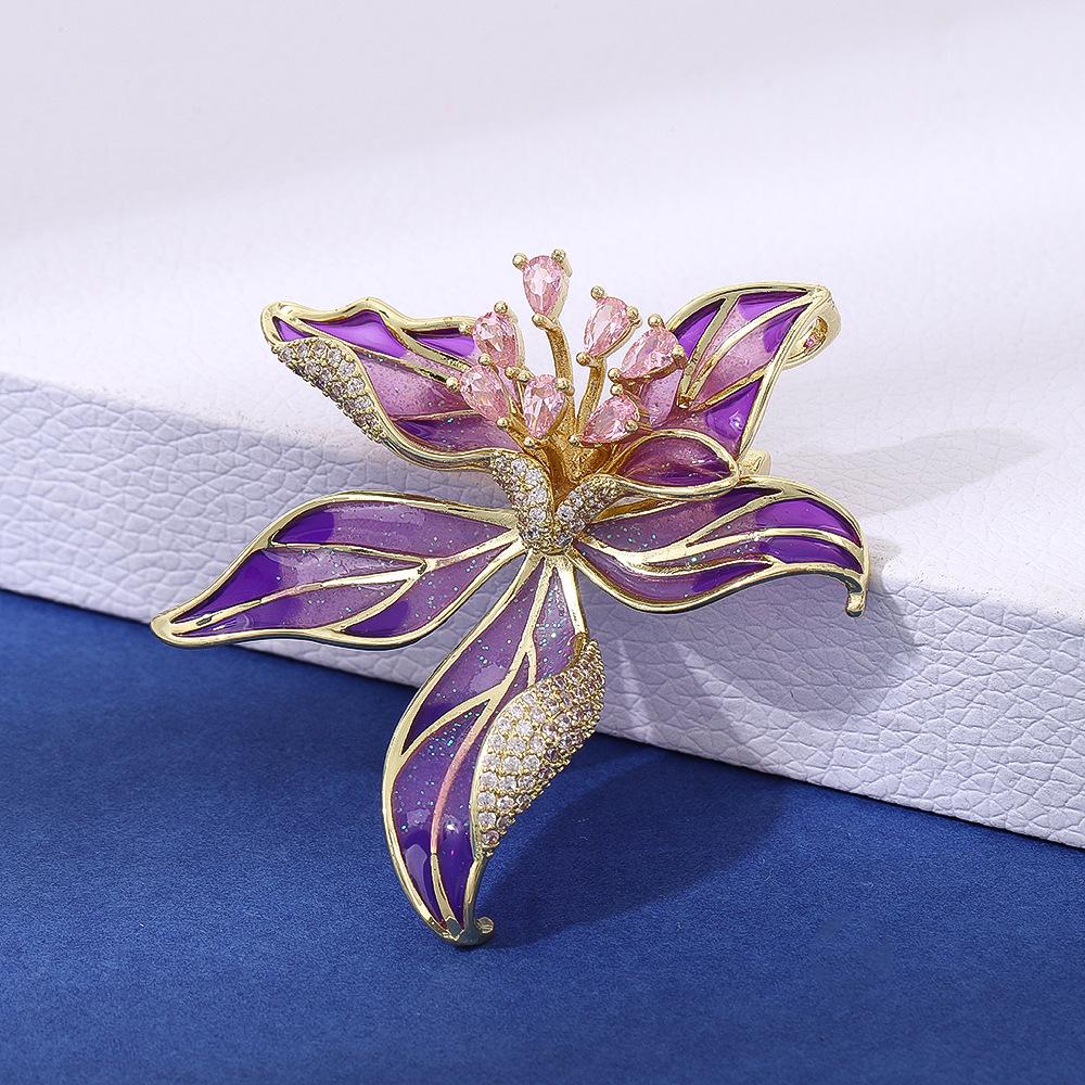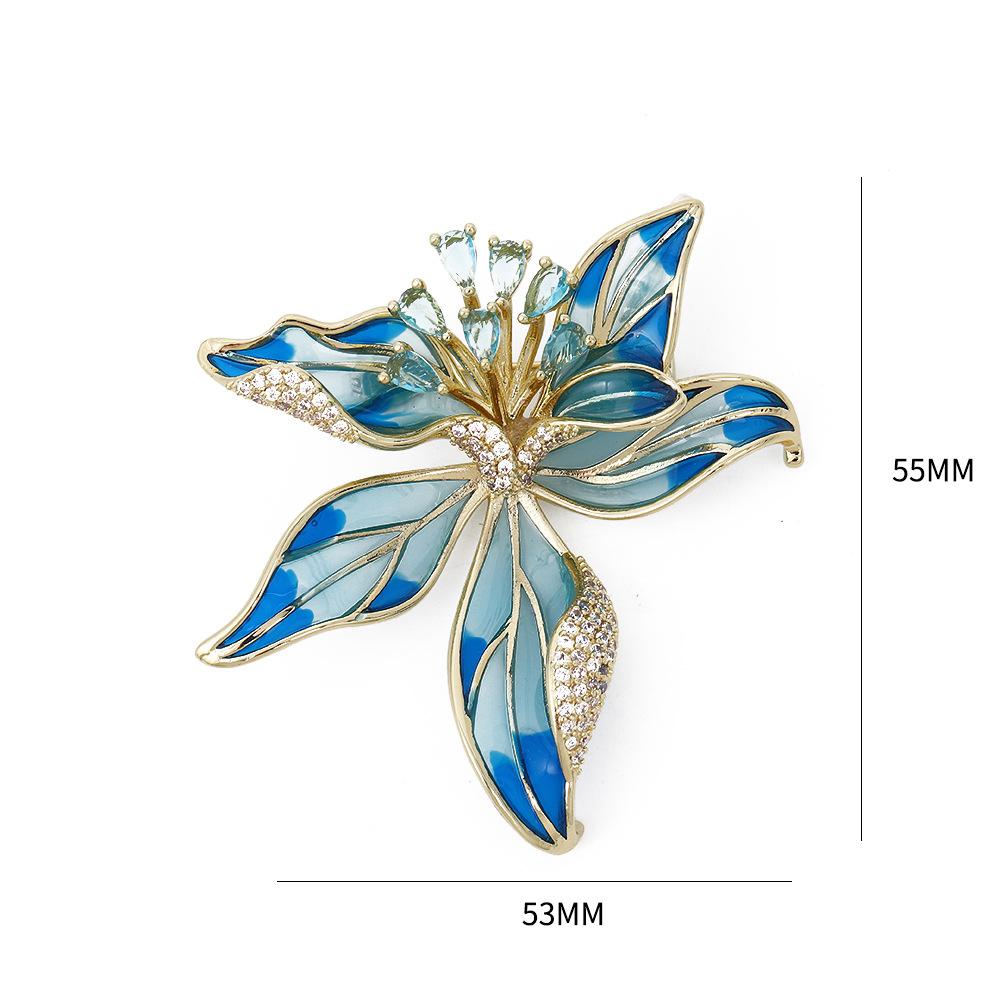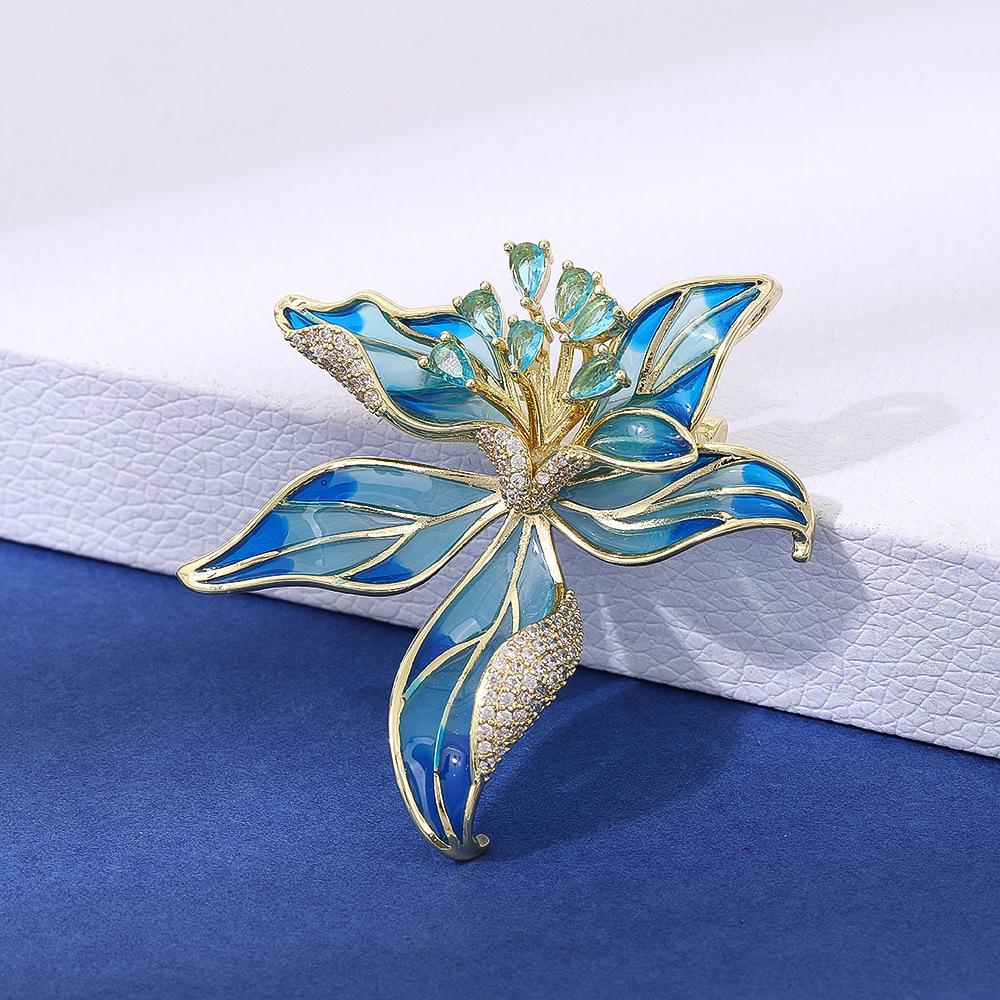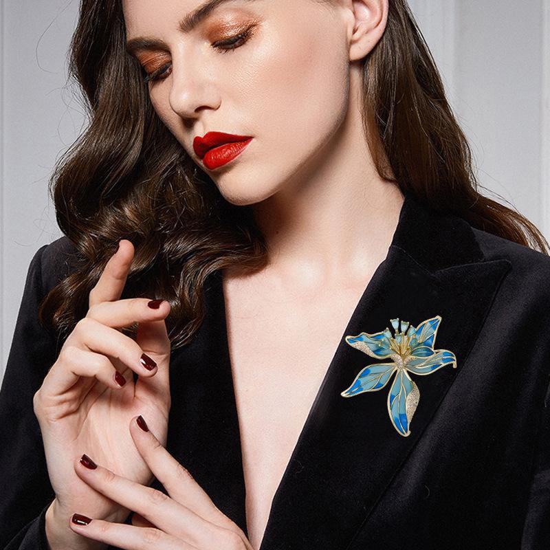 Broche de flor de iris de alta gama para mujer, exquisito diseño de moda, alfiler con sentido del estilo, decoración para abrigos y trajes, ramillete francés.