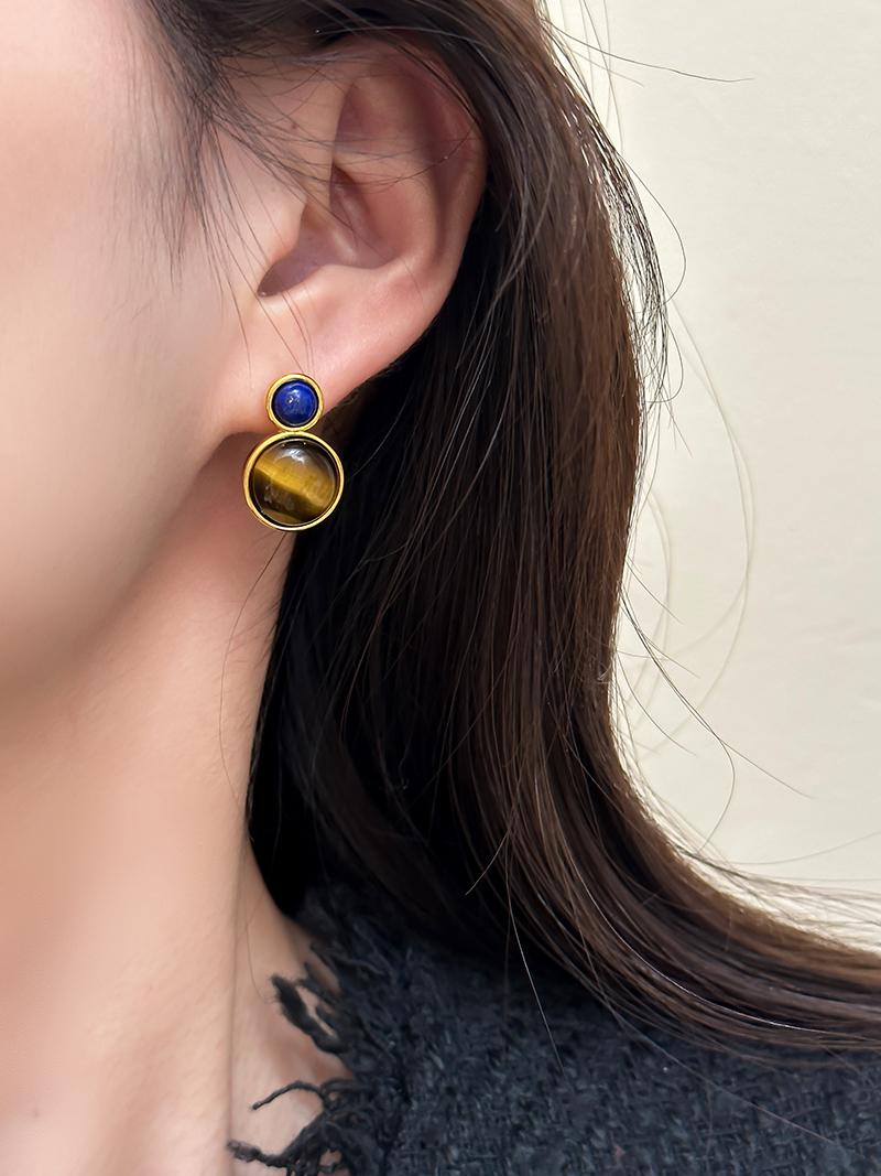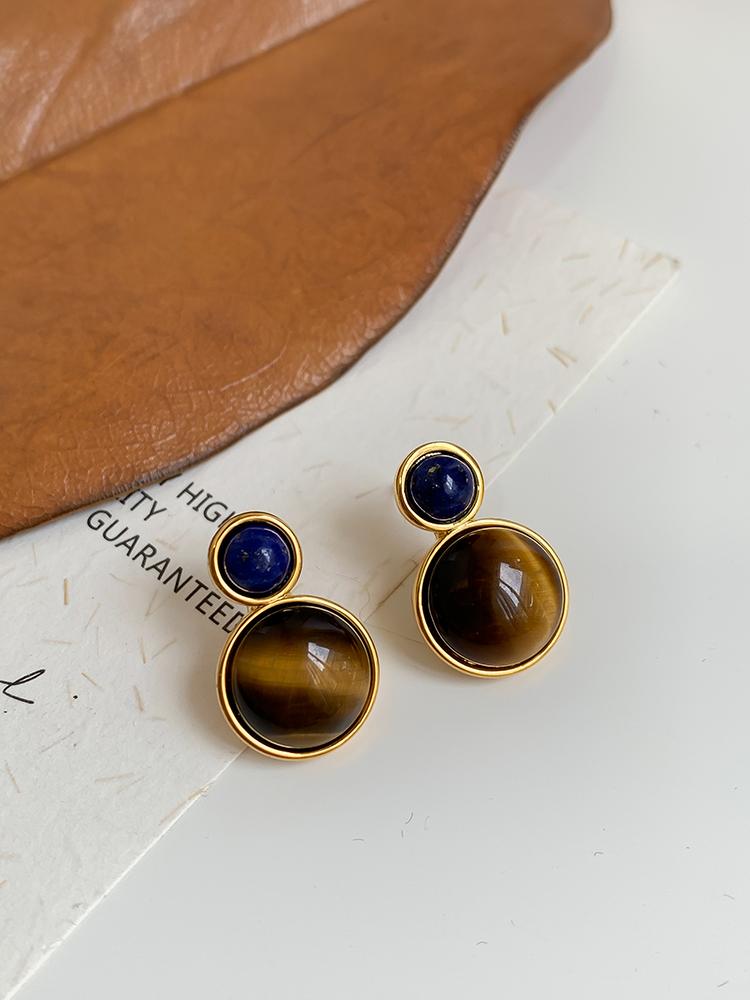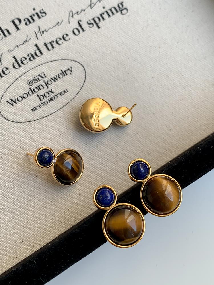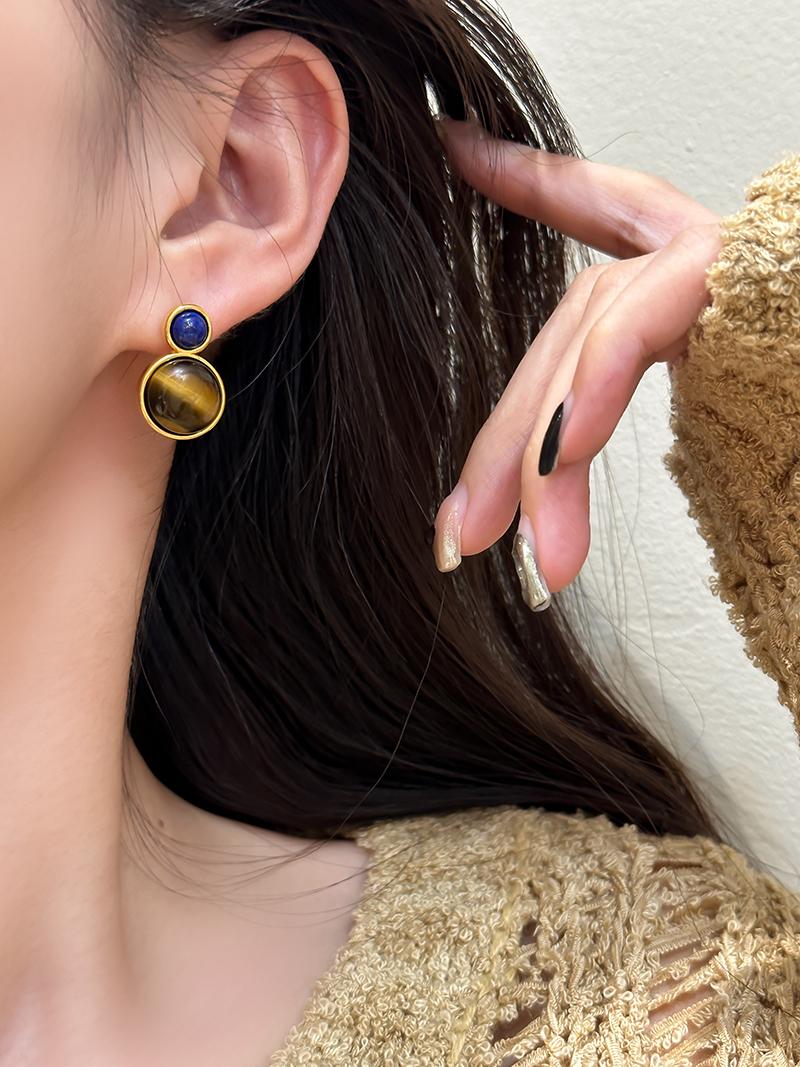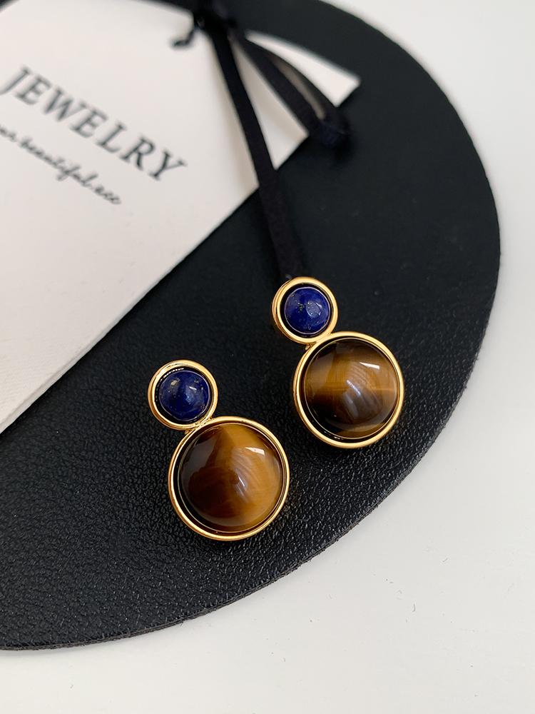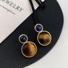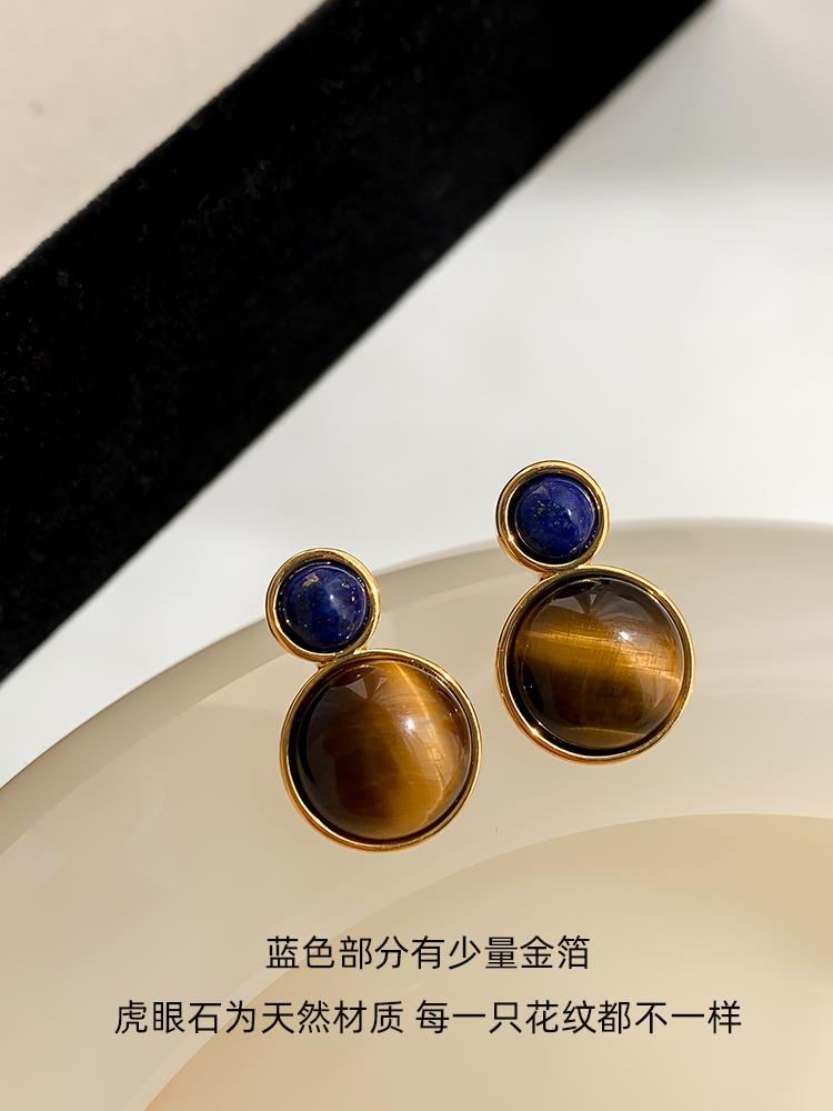 Otoño e invierno 2023 Nuevo Pendientes de botón de aguja de plata 925 de moda retro francés Maillard Piedra Ojo de Tigre pendientes nicho de otoño e invierno