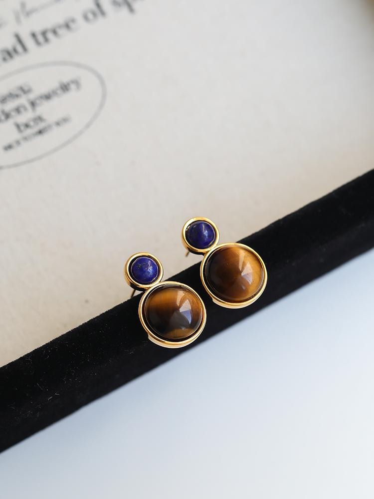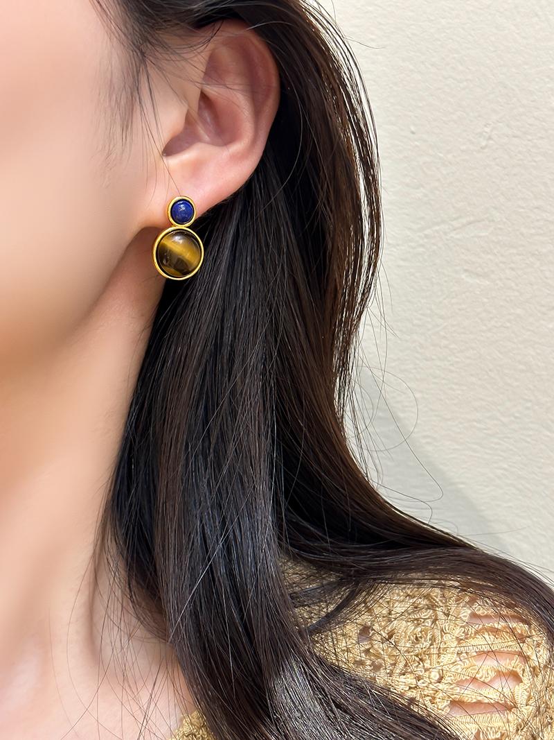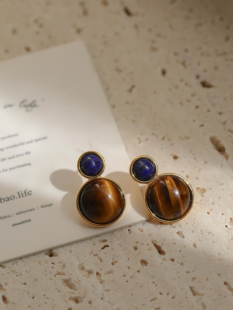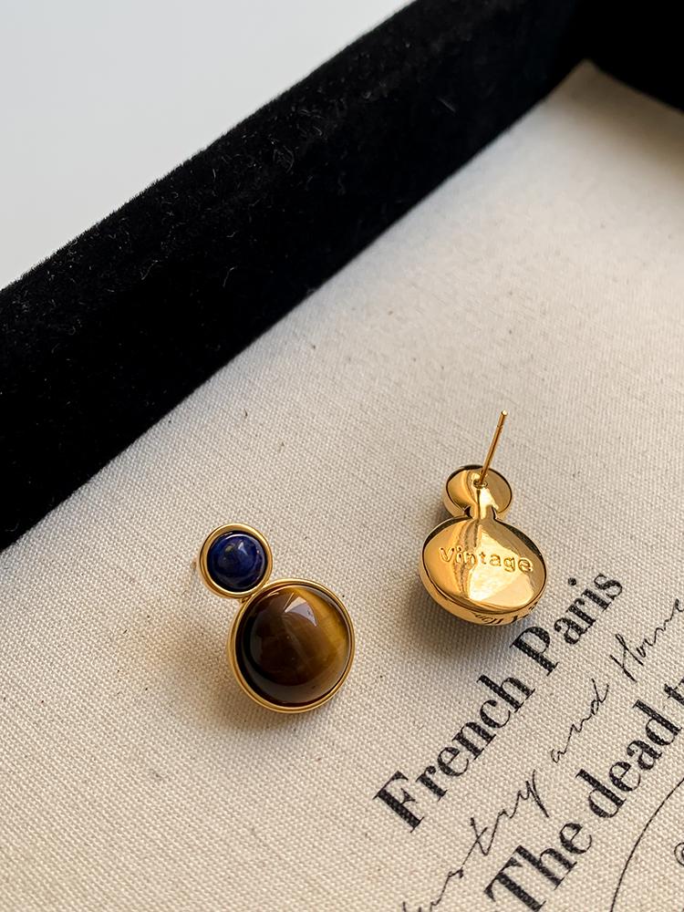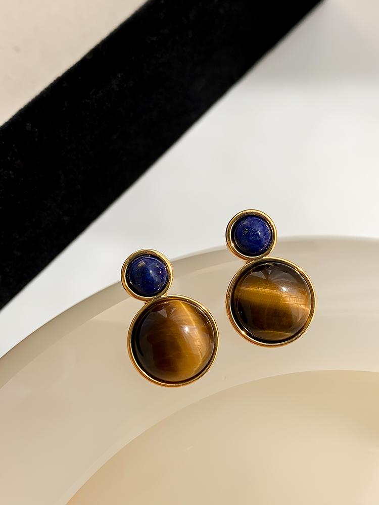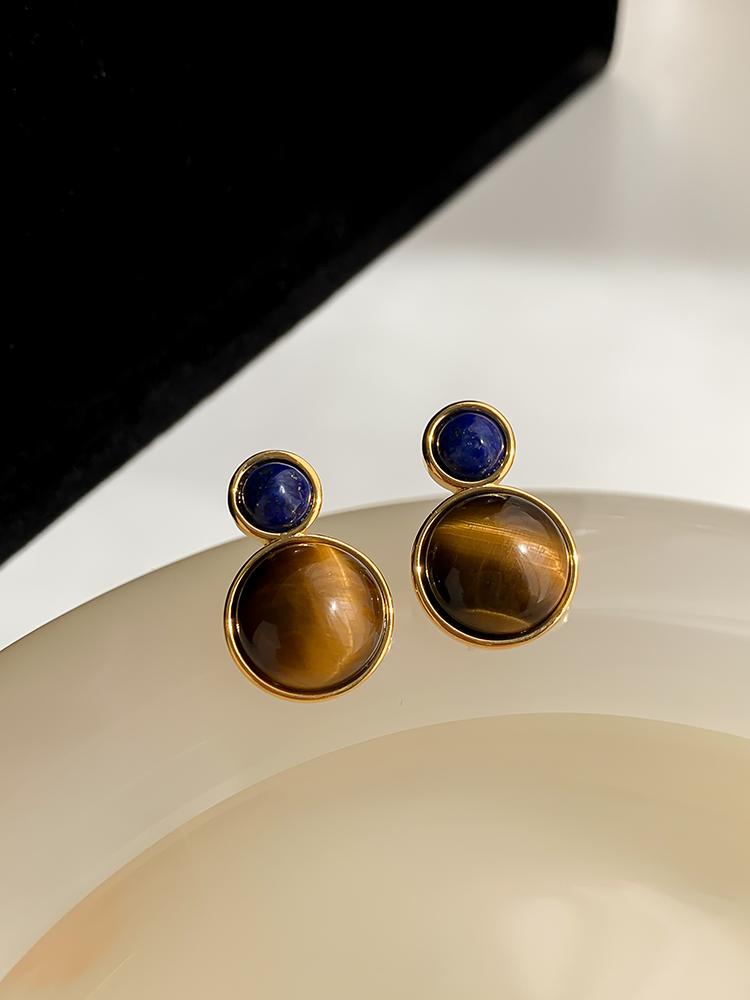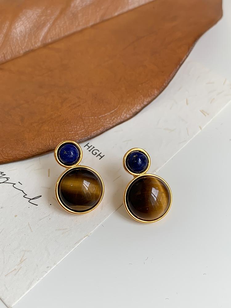 Otoño e invierno 2023 Nuevo Pendientes de botón de aguja de plata 925 de moda retro francés Maillard Piedra Ojo de Tigre pendientes nicho de otoño e invierno
