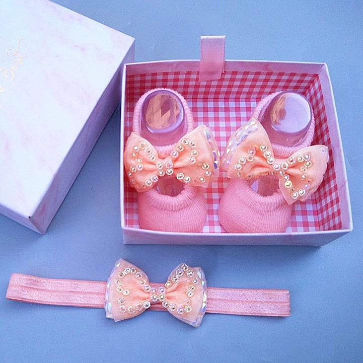 Compra Set de Calcetines y Banda para el Cabello para Niños Estilo Coreano Diadema de Lazo Europeo y Americano Caja de Regalo para Bebé Recién Nacido Infantil de Luna Llena al por mayor en Joom.pro