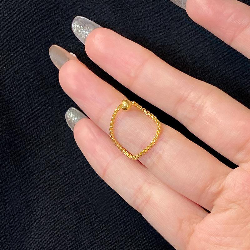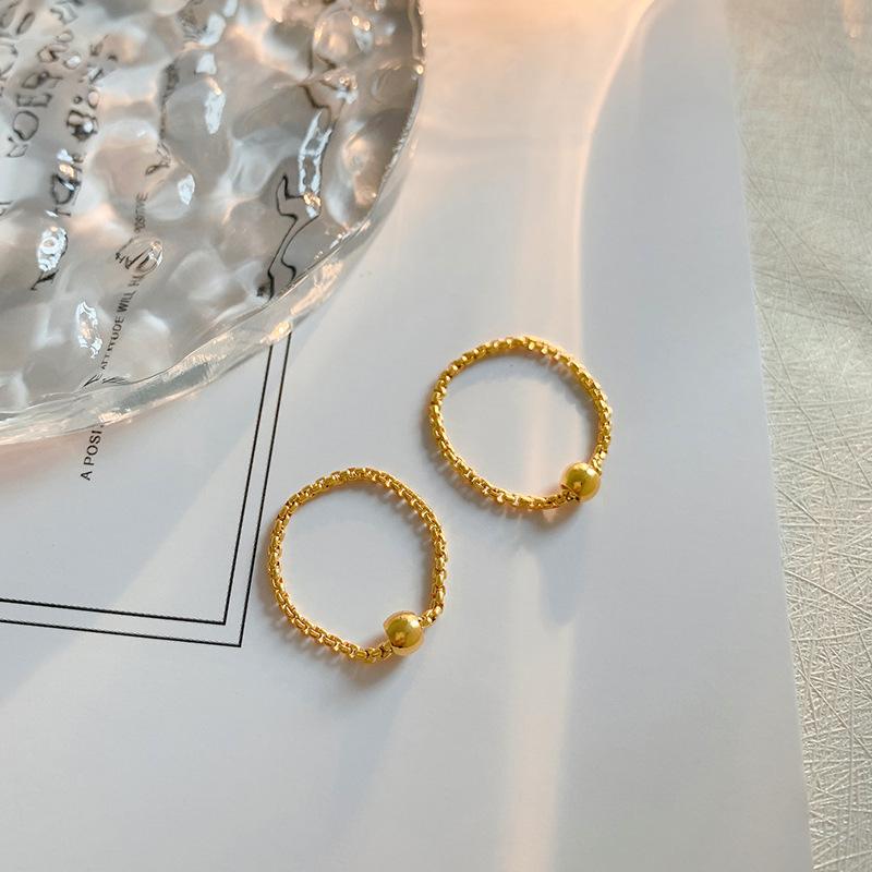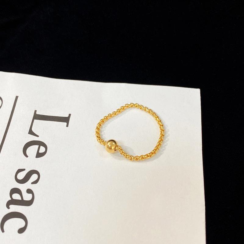 Anillo de cadena simple de estilo japonés y coreano para mujer, estilo frío, pequeño anillo de dedo dorado con forma de frijol, anillo simple de nicho personalizado, anillo de cola