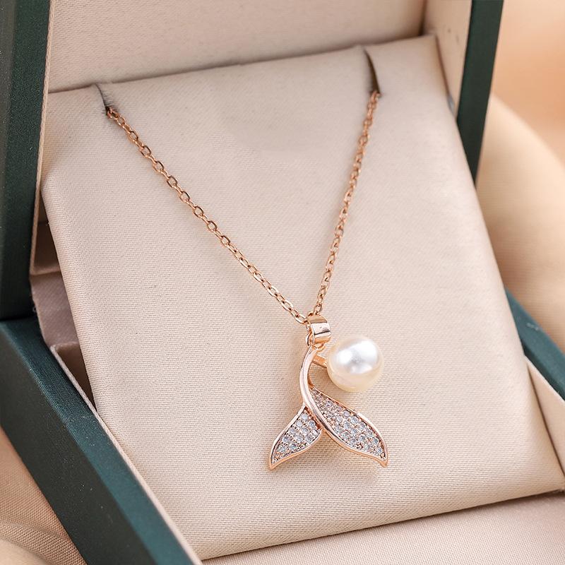 Compra Collar de Acero de Titanio con Colgante de Perla Ji de Sirena para Mujer, Exquisito, Versátil, Nuevo Ingreso, Lujo, Nicho, Diseño de Alta Gama, Cadena para Clavícula al por mayor en Joom.pro