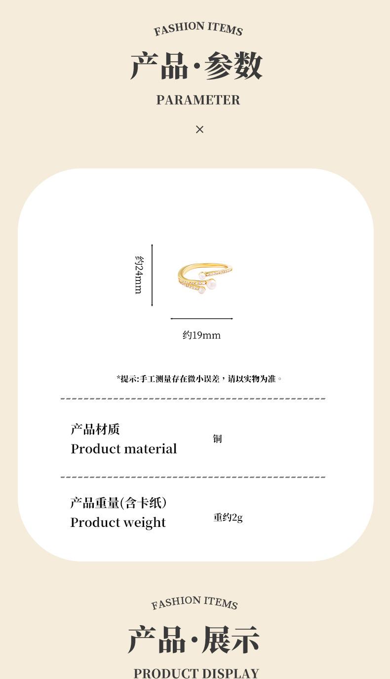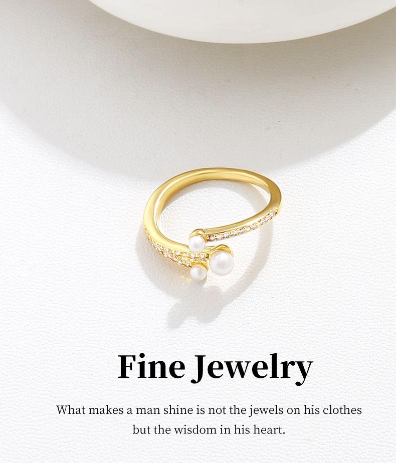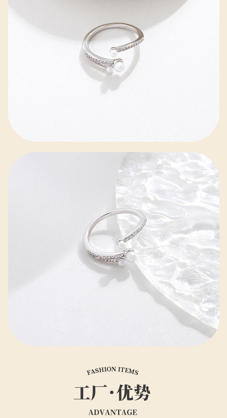 Compra Anillo de perla francesa con nicho y circonita de alta calidad, anillo ajustable para el dedo índice, anillo de apertura con banda apilada para mujer al por mayor en Joom.pro