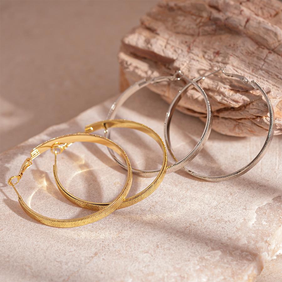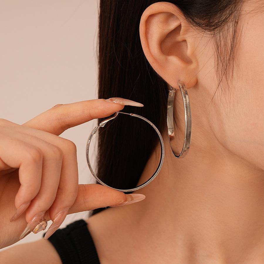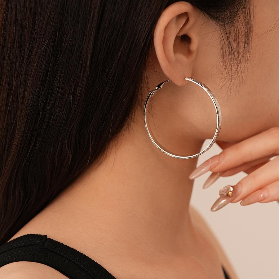 Aretes de Aro con Patrón Metálico Simple Europeo y Americano, Pin Plateado, Moda Nicho, Elegantes, de Gama Alta, Geométricos para Mujer