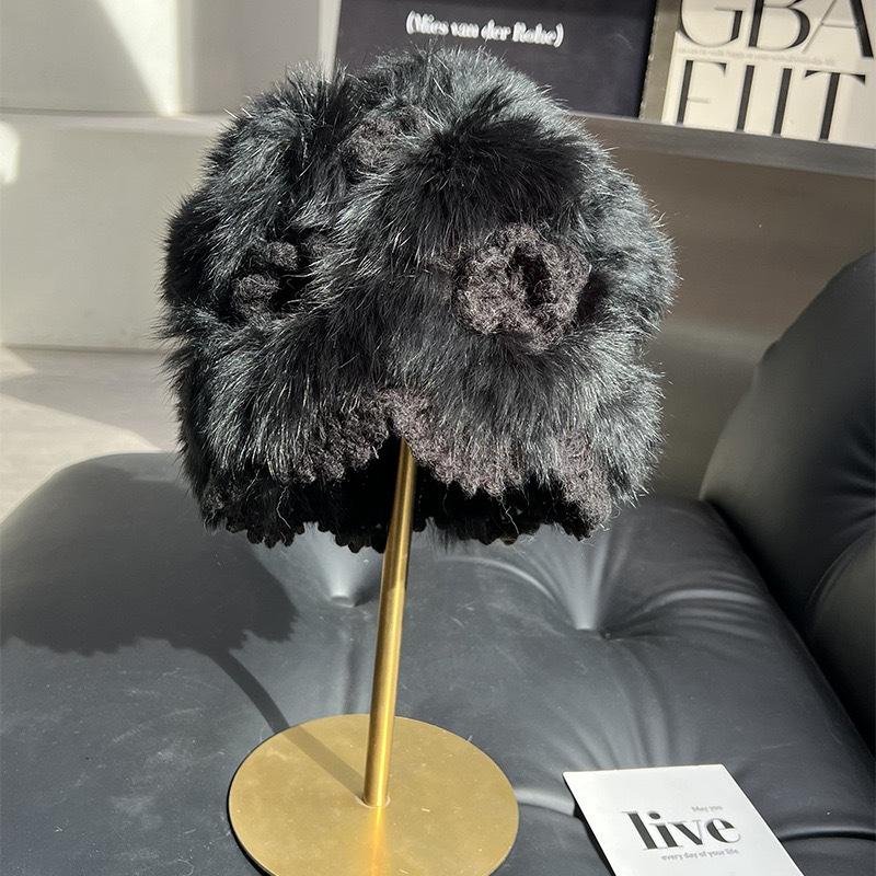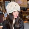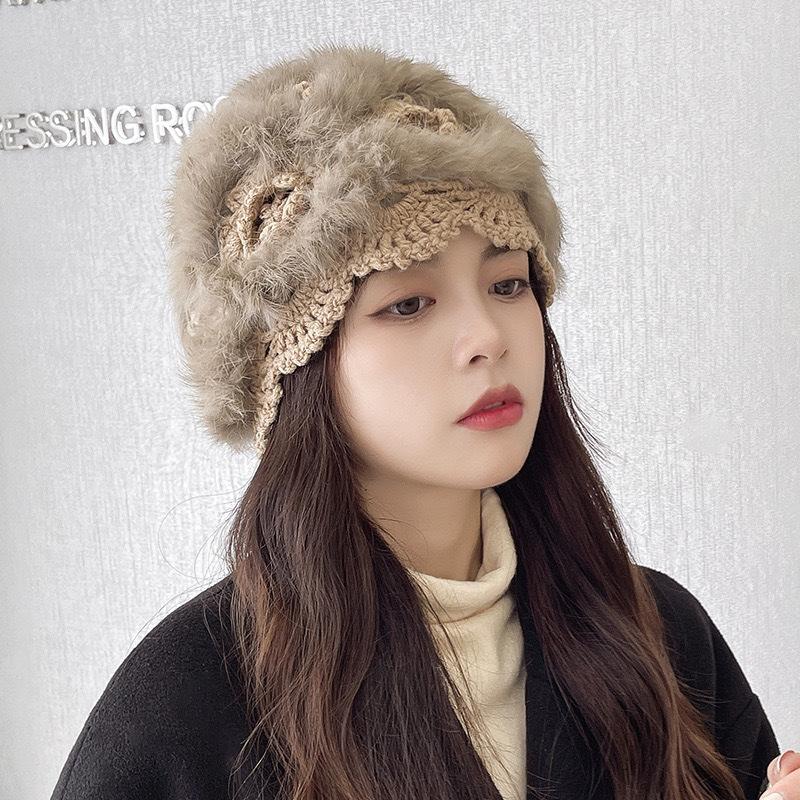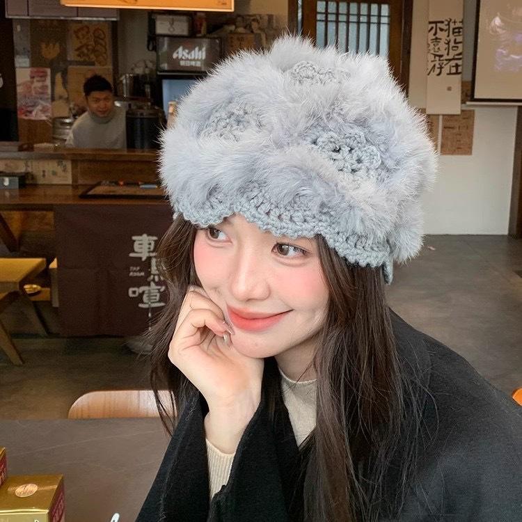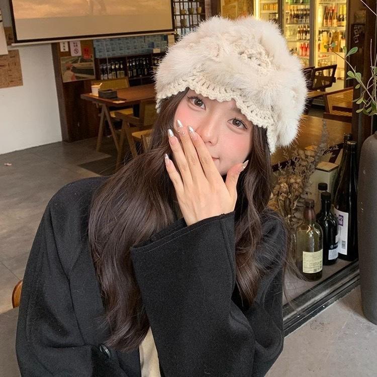 Gorro de punto de lana cálido, resistente al frío y combinable al estilo coreano para mujer, para otoño e invierno, de lana auténtica, de peluche de conejo.