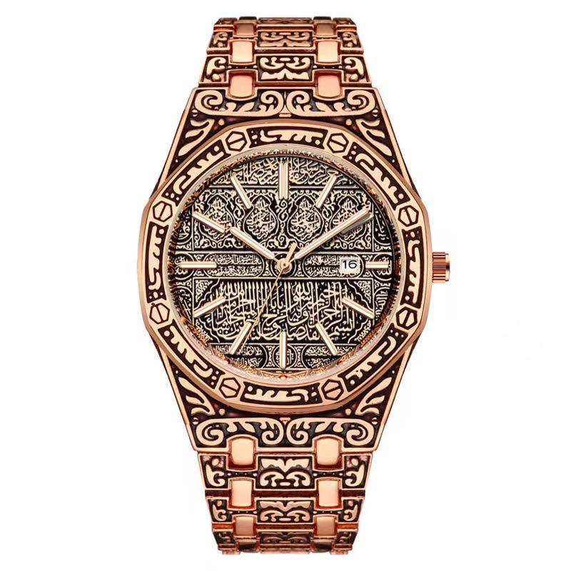Comercio exterior 2023 nuevo reloj de pulsera de acero de moda popular para hombre, reloj tallado con calendario, reloj de cuarzo para hombre al por mayor