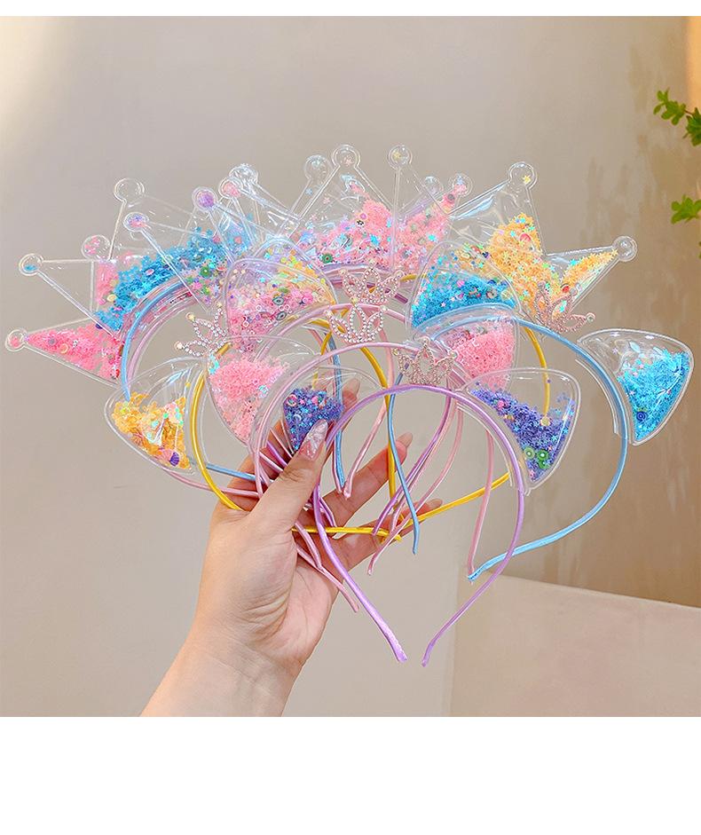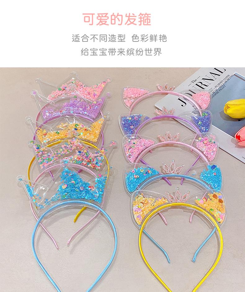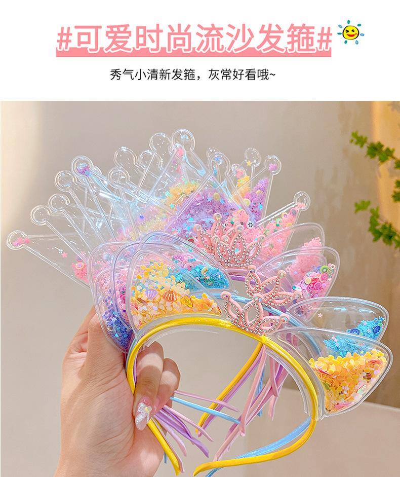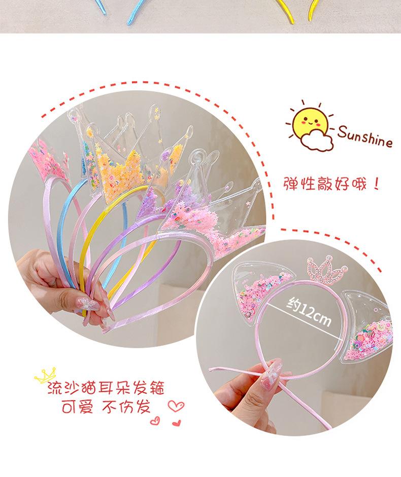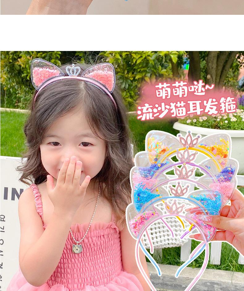 Diadema con orejas de gato de arena movediza para niños de Corea del Sur, diadema con corona súper linda para niña pequeña, accesorios para el cabello dulces de princesa.