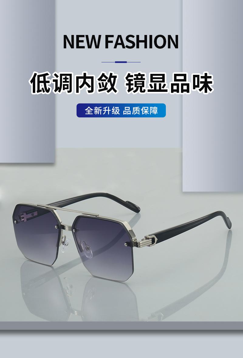 2024 Nuevas Gafas de Sol Cuadradas de Metal con Media Montura para Hombre Tendencia de Moda Conducción Pesca Protección UV Gafas de Sol