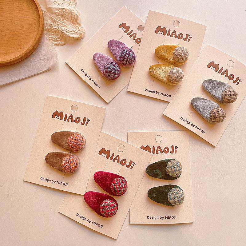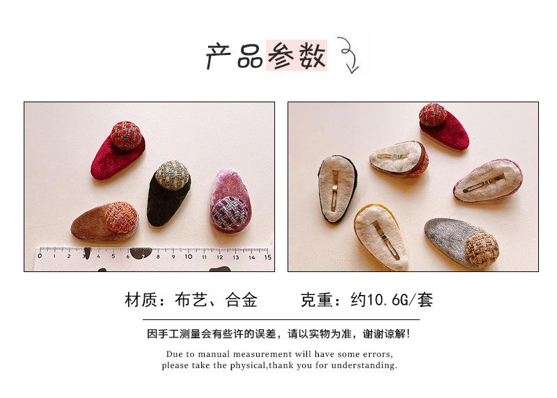 Compra Pinza para el cabello infantil de terciopelo vintage, linda pinza para flequillo con botón, gota de agua para cabello suelto de niña, pinza BB versátil para par, pinza lateral al por mayor en Joom.pro