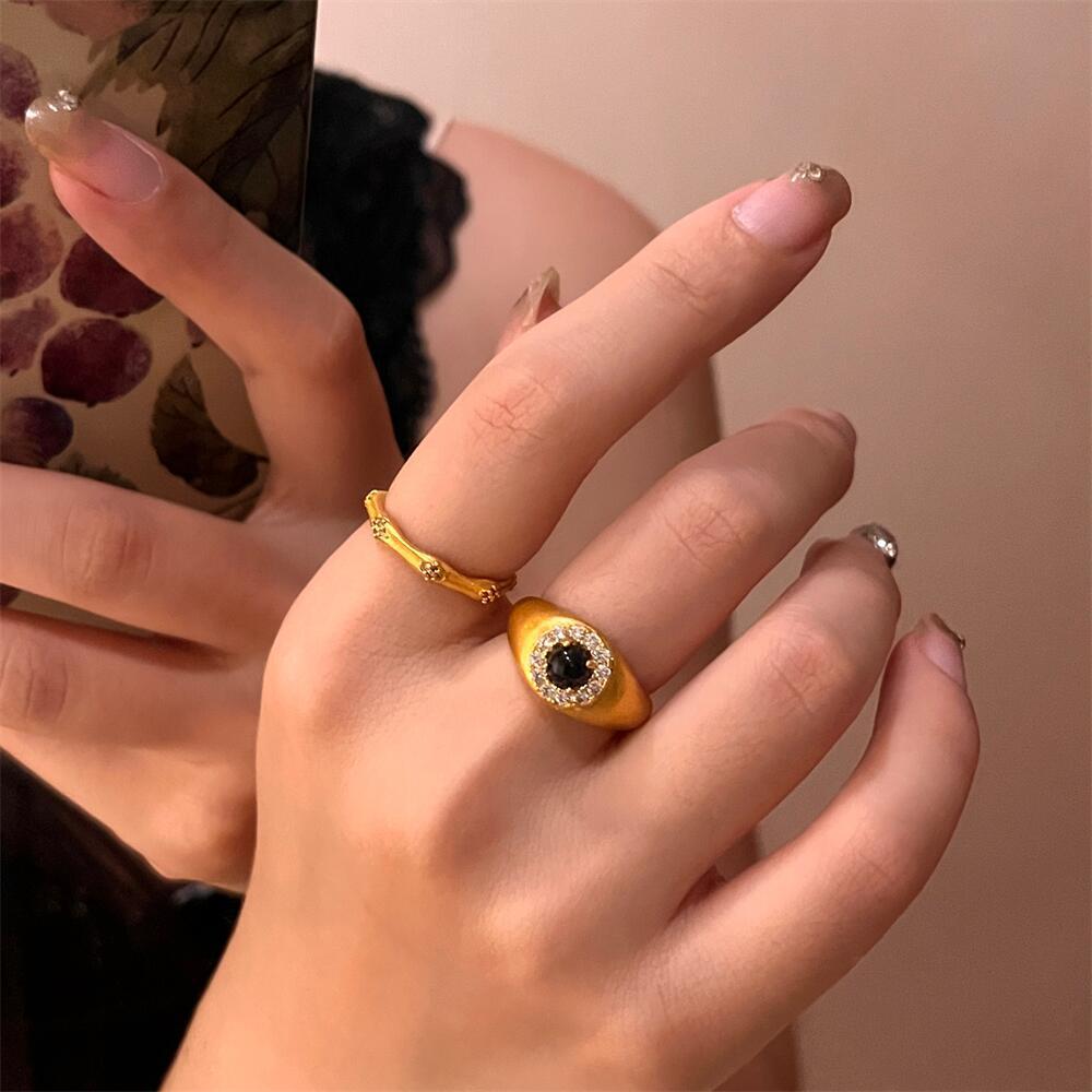 Compra Anillo Nuevo Estilo Chino Estilo Nacional Oro Cepillado Mate Anillo Abierto Ajustable Sensación Avanzada Anillo de Dama Celebridad con Incrustaciones de Diamantes al por mayor en Joom.pro