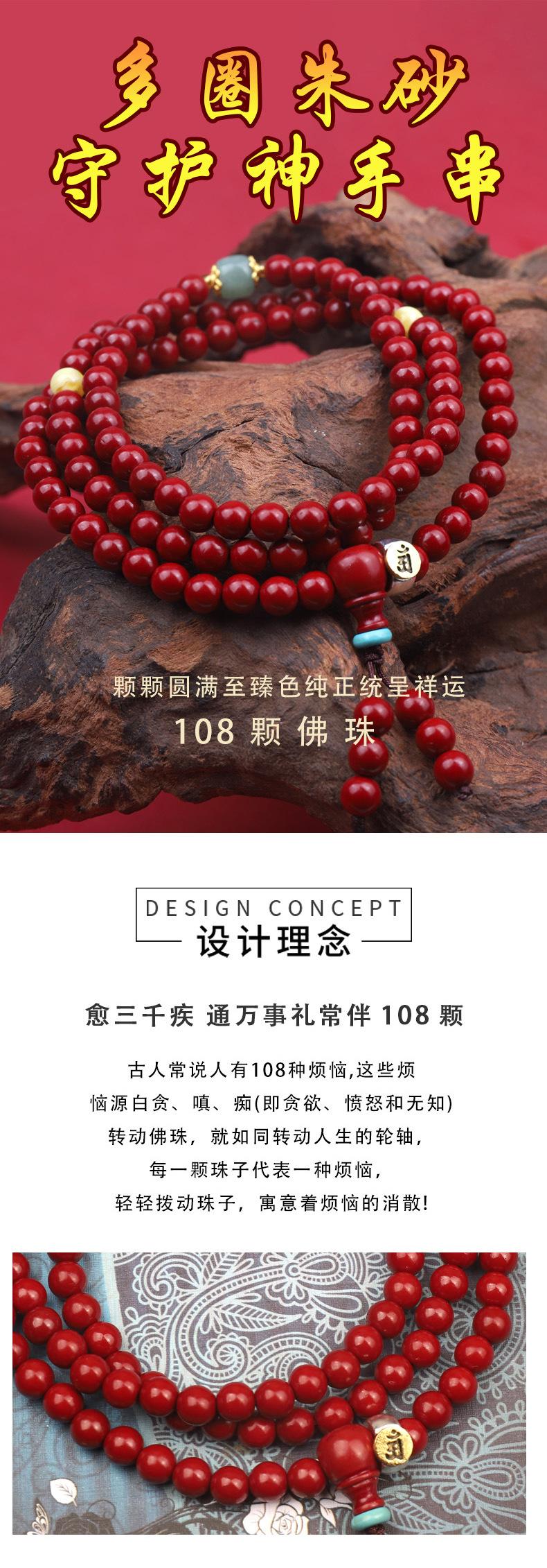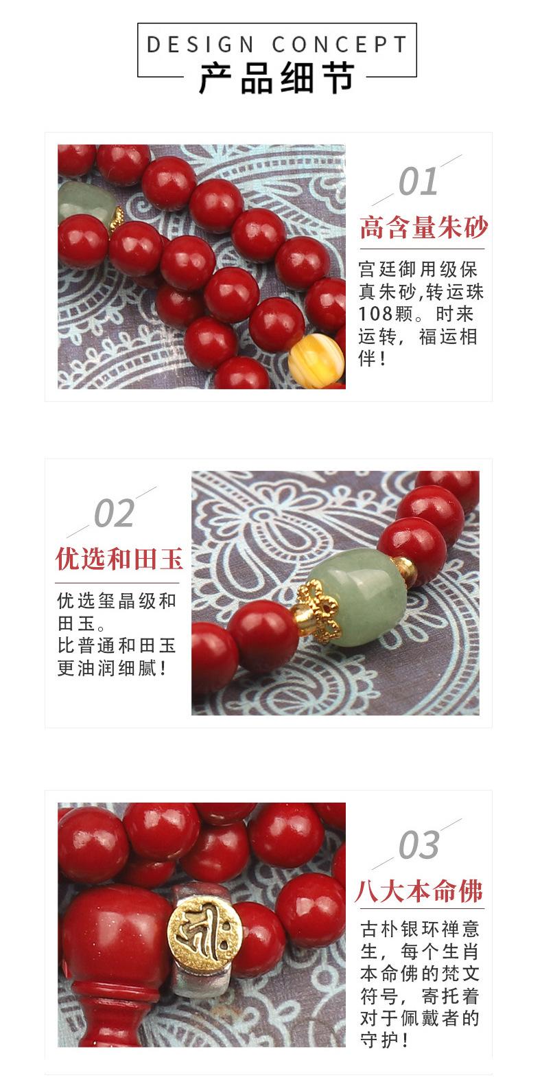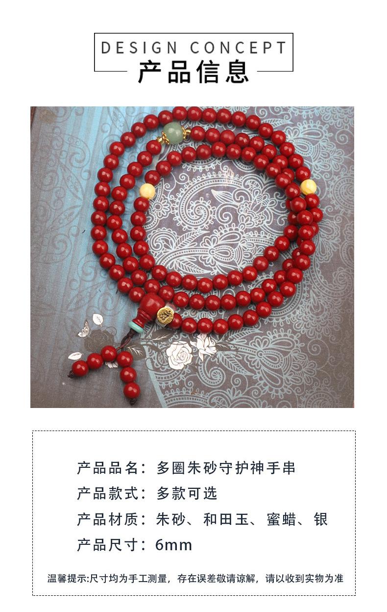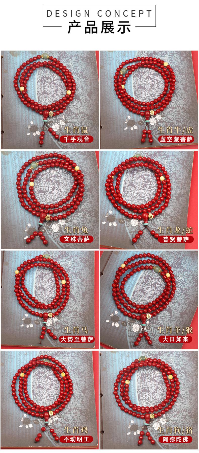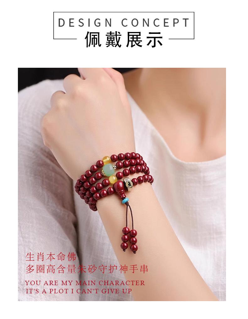 Pulsera de cinabrio para mujer, ocho santos patronos, estilo chino, suministro de alto contenido de cinabrio, pulsera de múltiples círculos, pulsera de transporte
