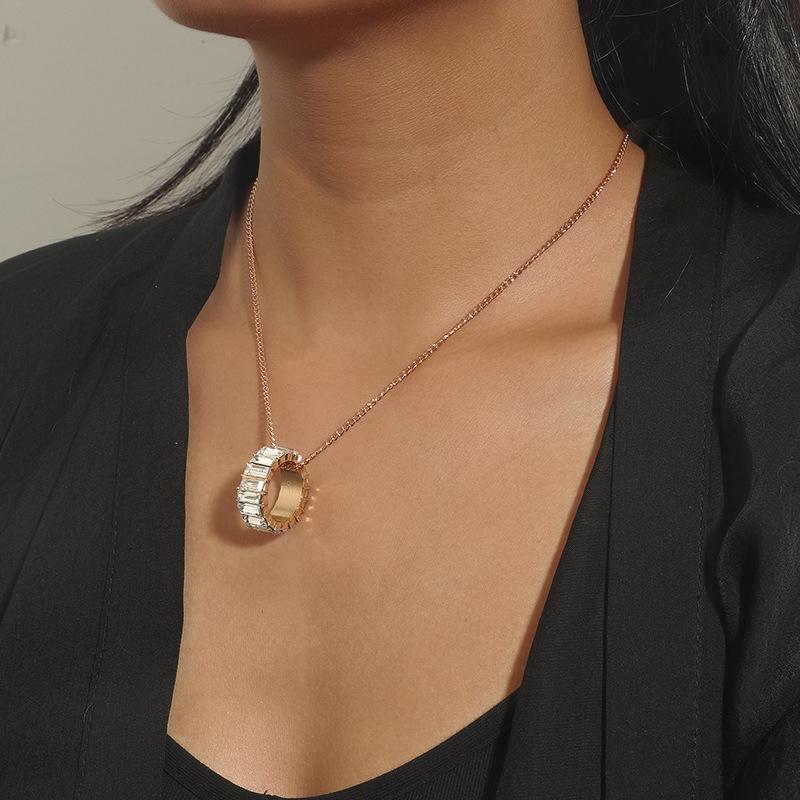 Collar de diamantes con círculo geométrico de nueva tendencia simple de moda, cadena de clavícula con diseño de personalidad creativa de temperamento japonés y coreano
