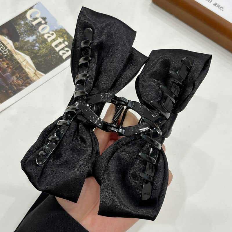 Clip de Lazo Doble Cara Negro Accesorio para el Cabello Clip para el Cabello de Princesa Femenino Parte Posterior de la Cabeza Clip Grande de Tiburón Diadema Clip para el Cabello