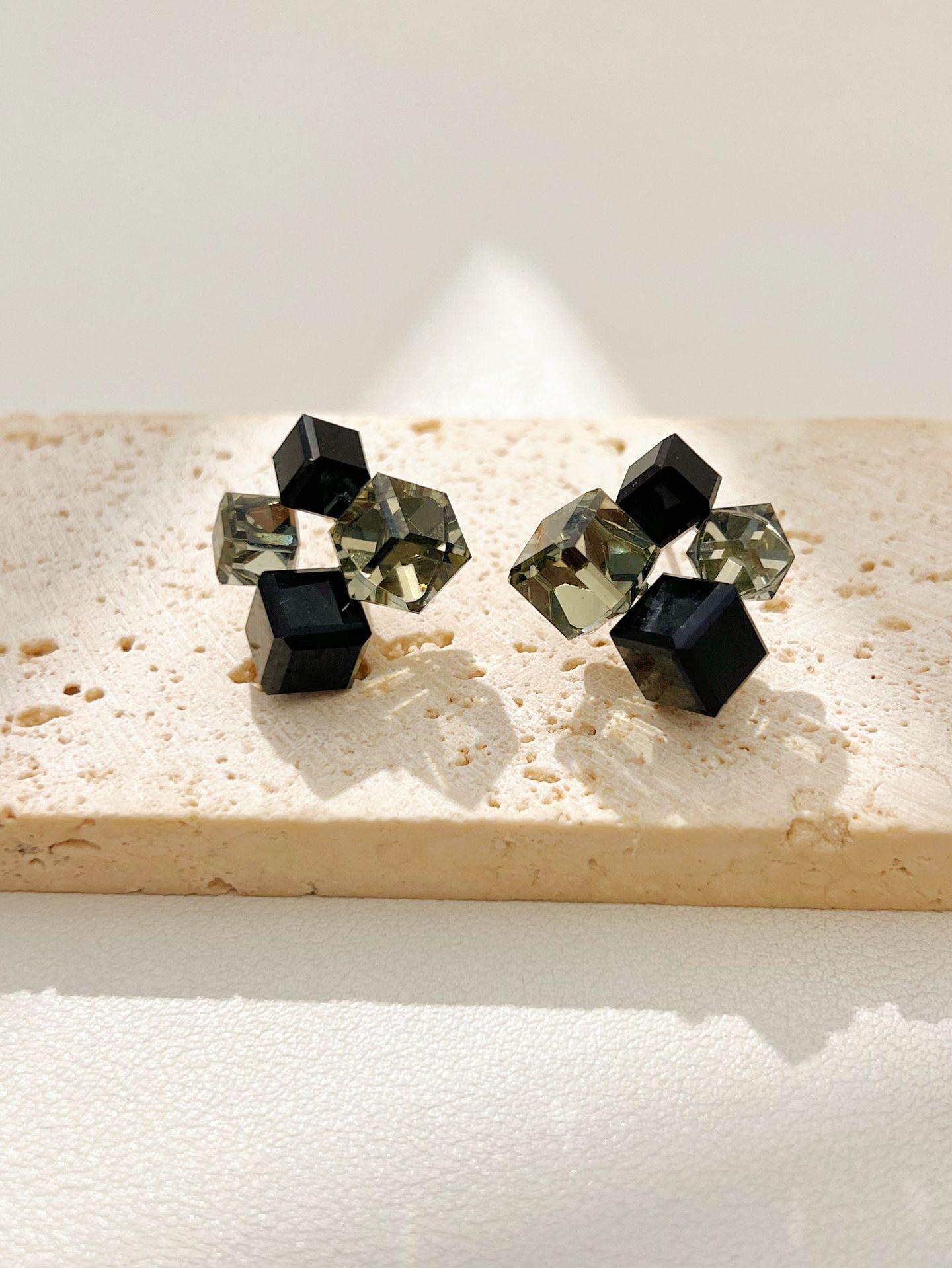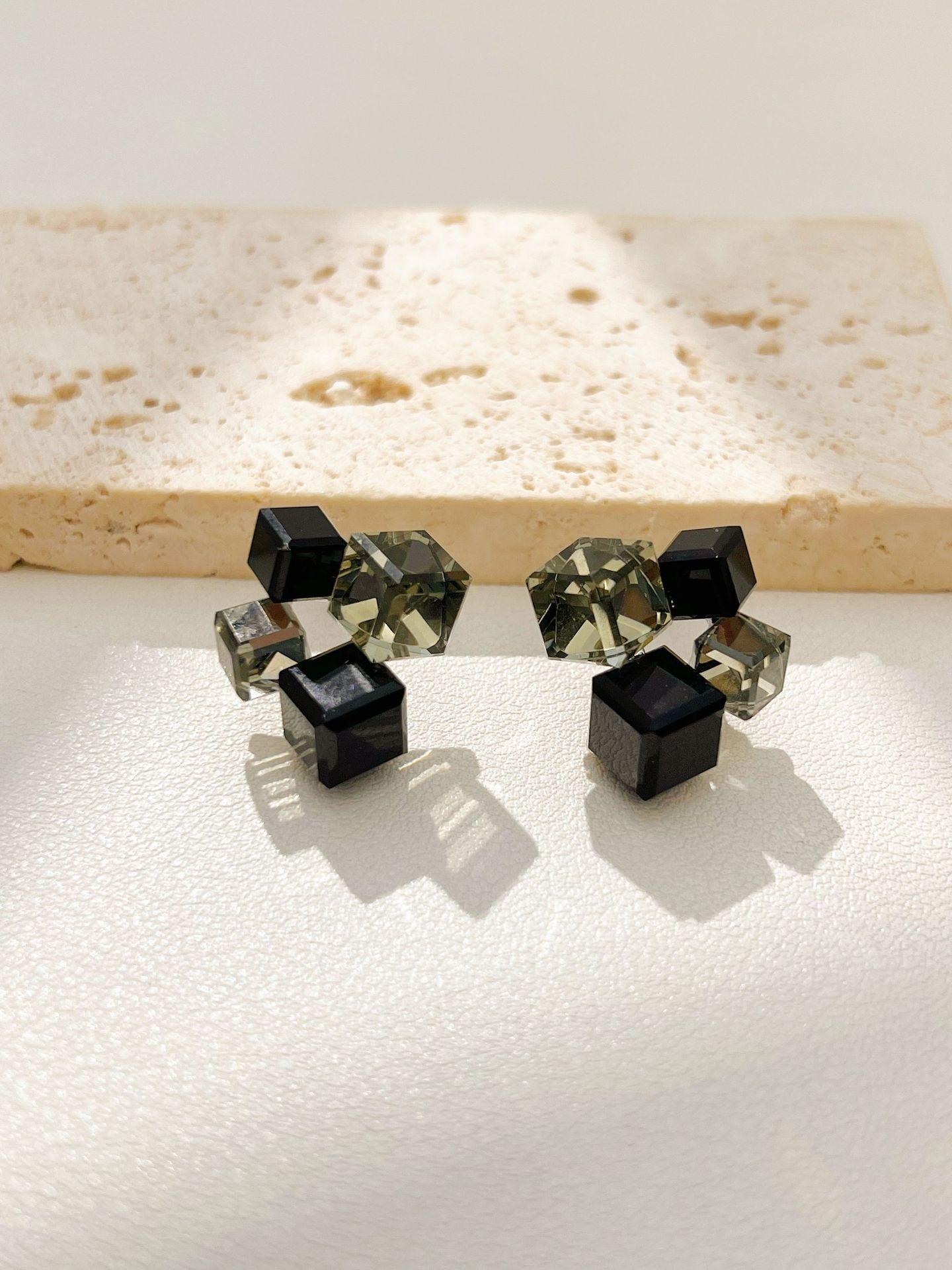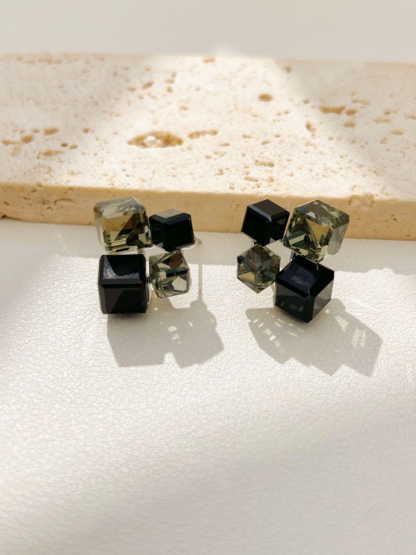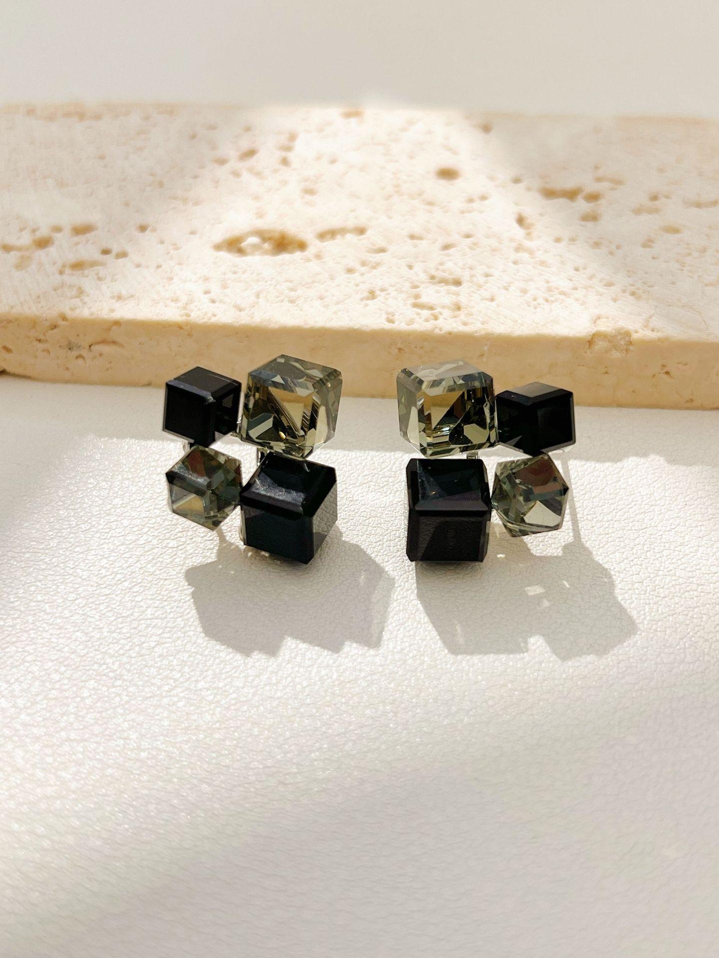 Pendientes de azúcar de cristal negro elegantes, diseño de nicho, pendientes de alta gama, pendientes de lujo ligeros a juego para mujer.
