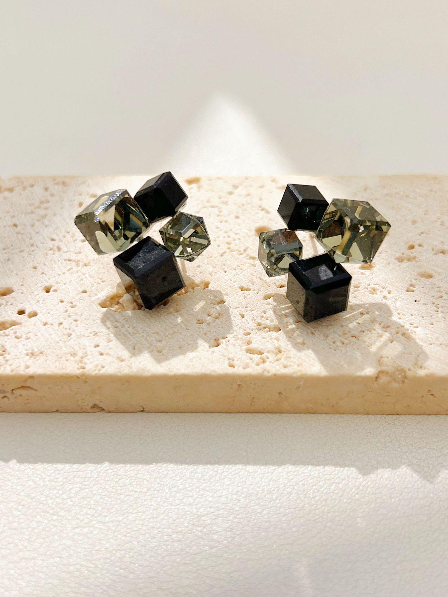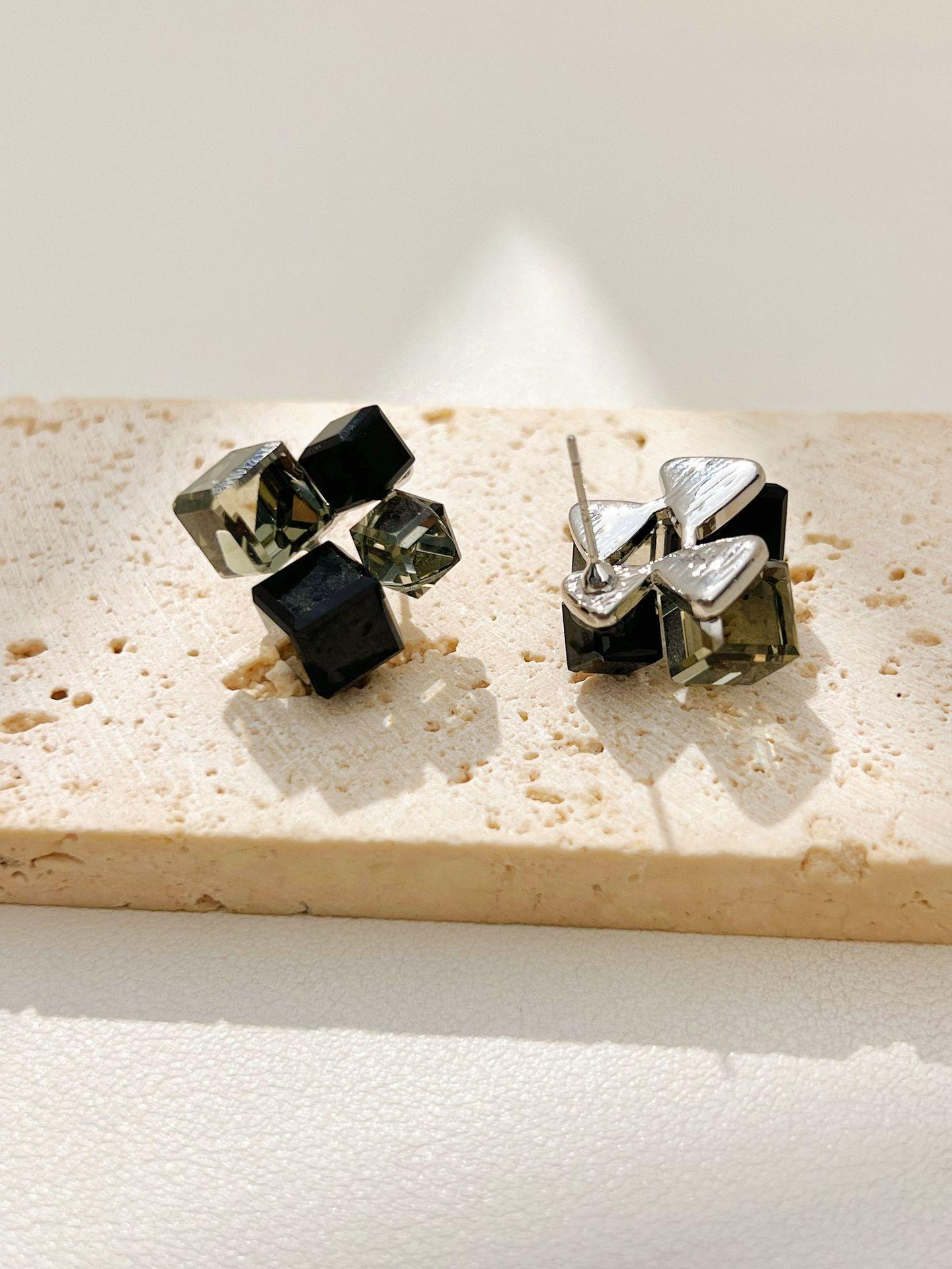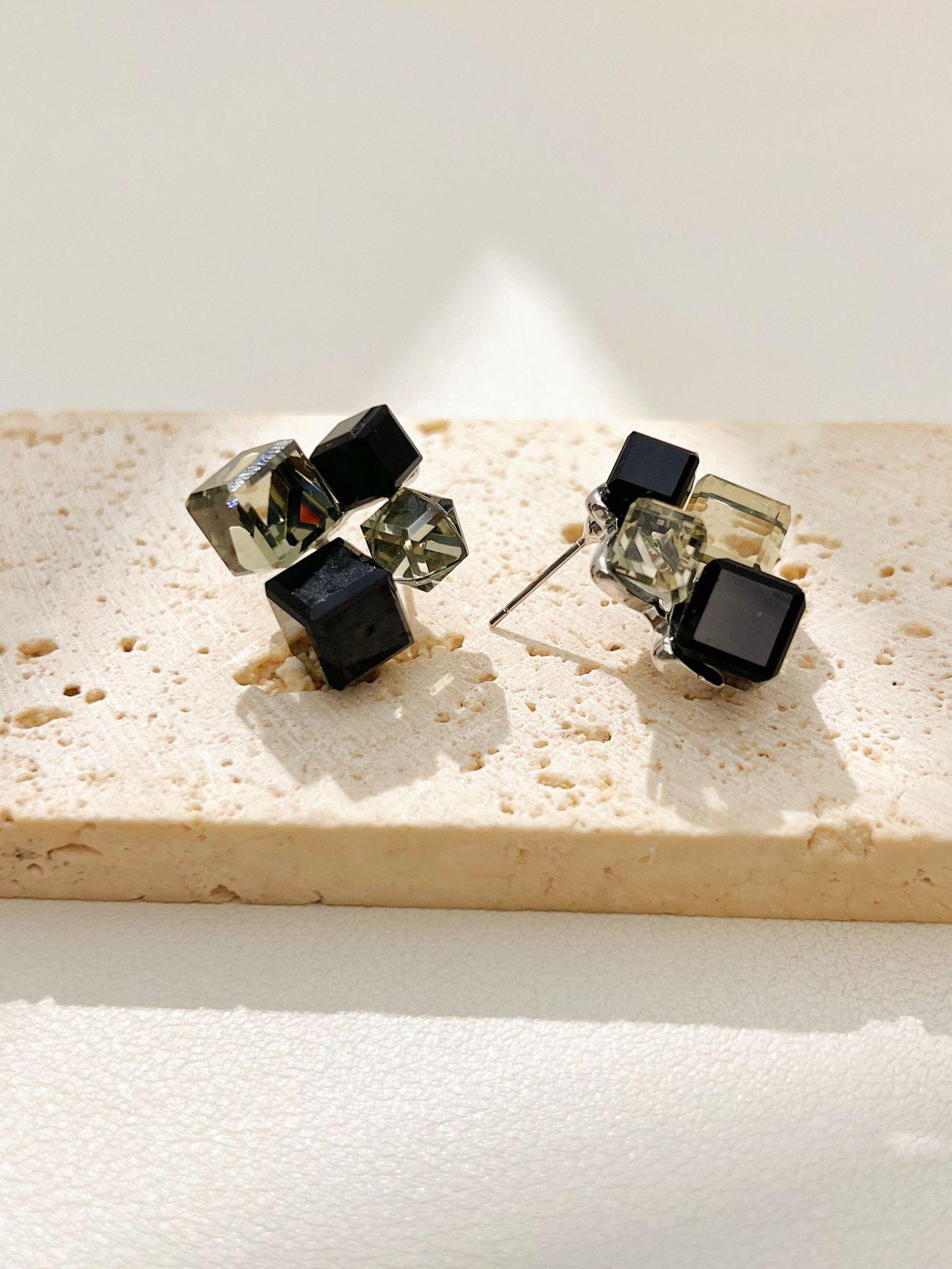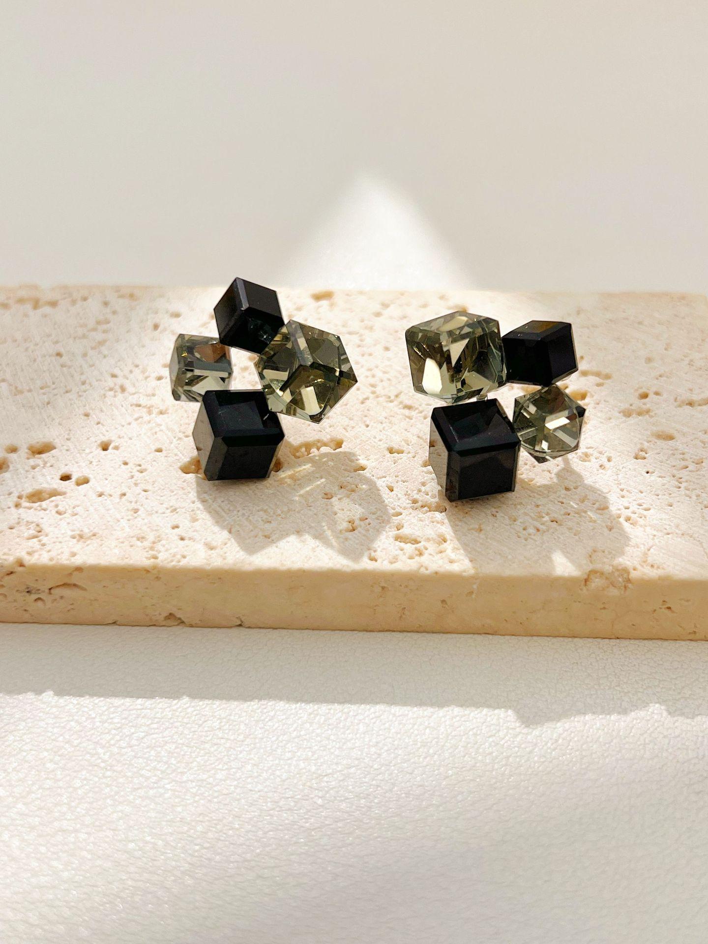 Pendientes de azúcar de cristal negro elegantes, diseño de nicho, pendientes de alta gama, pendientes de lujo ligeros a juego para mujer.
