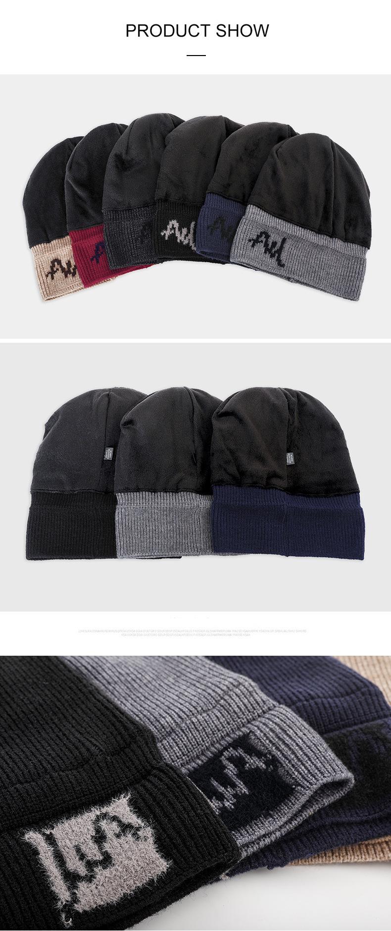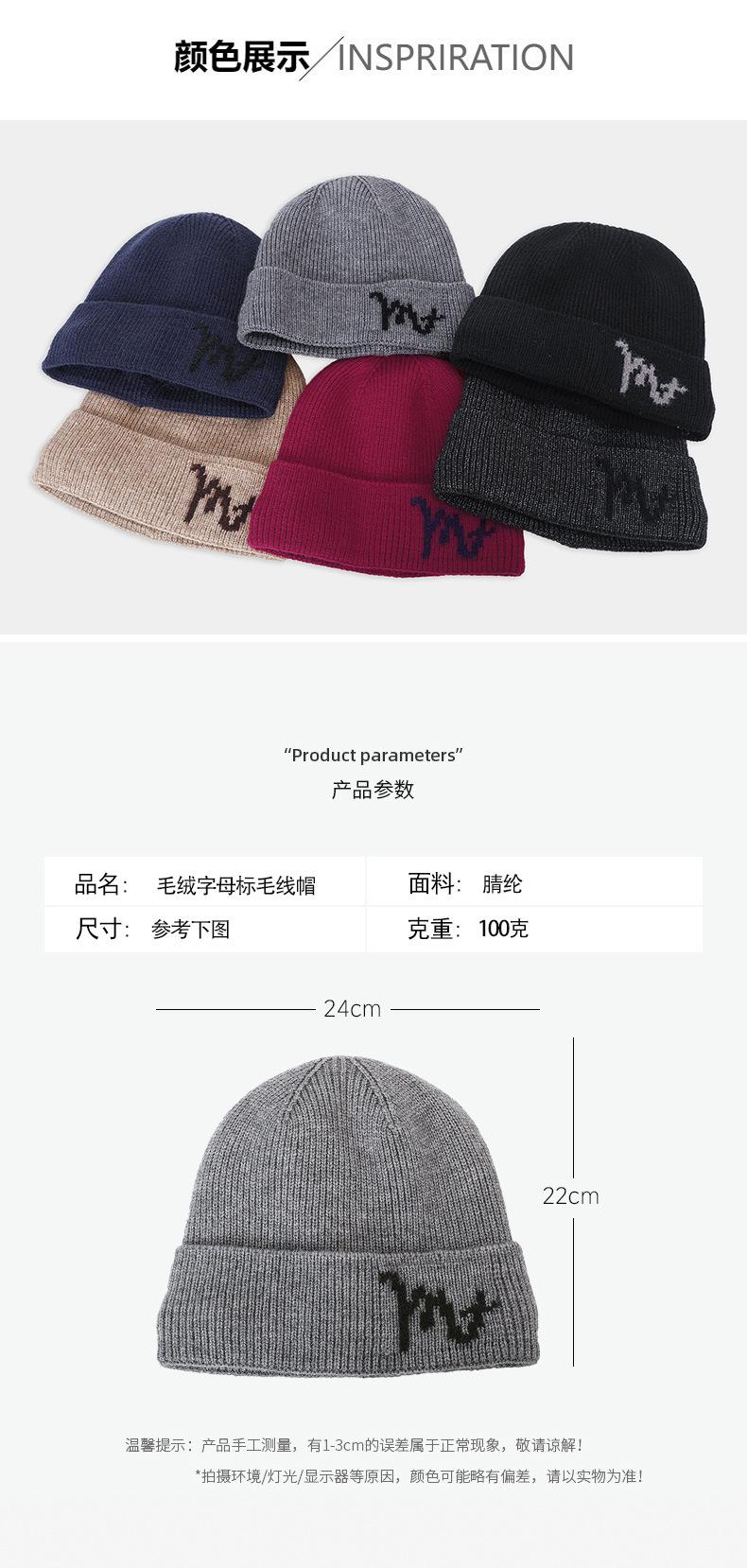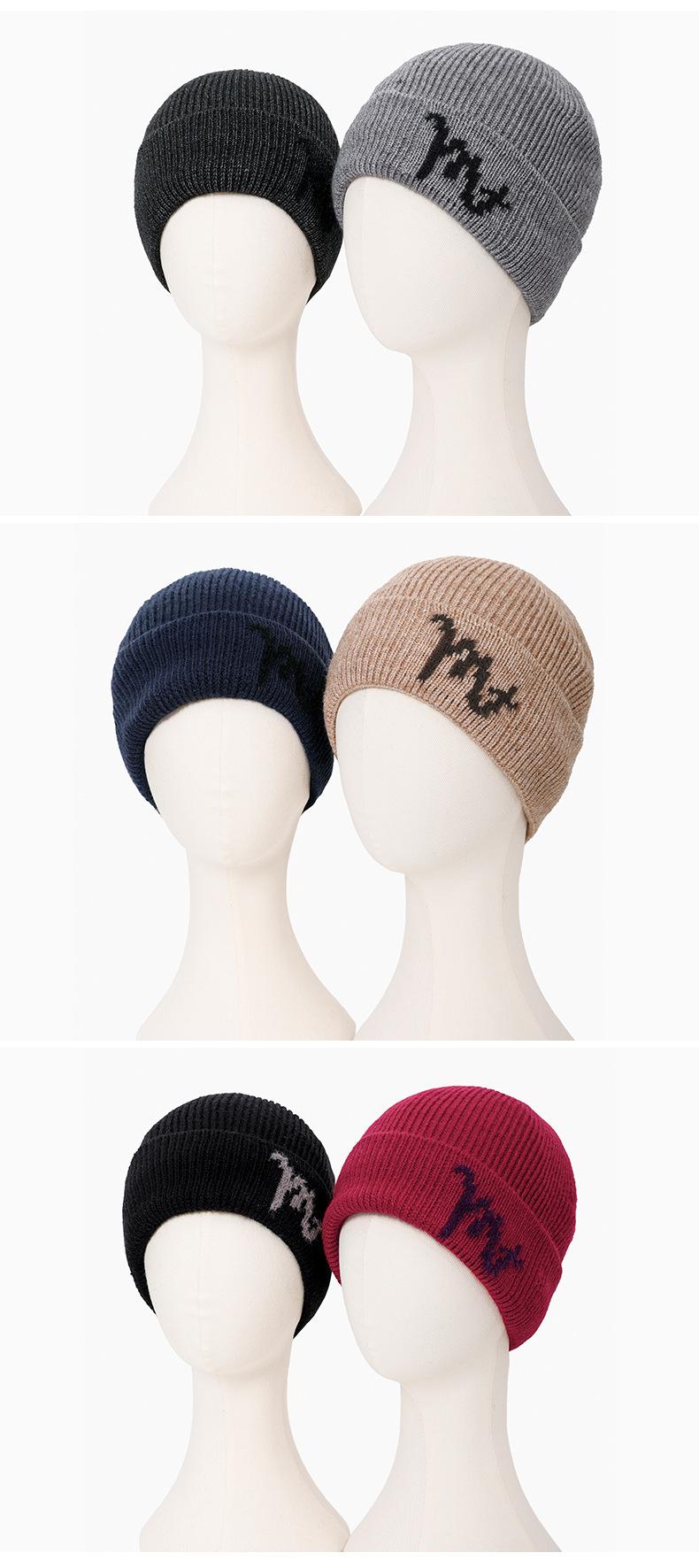 Gorro de lana con letras transfronterizas, gorro grueso de felpa para otoño e invierno, gorro de punto cálido para exteriores con forro polar para hombres y mujeres.
