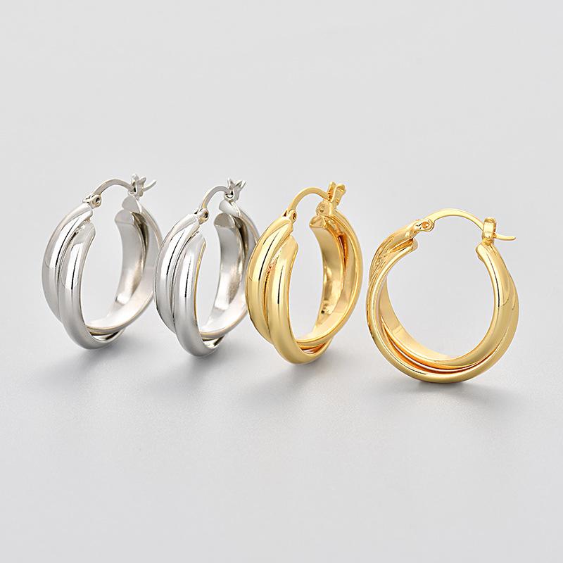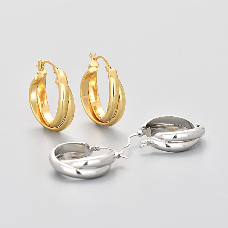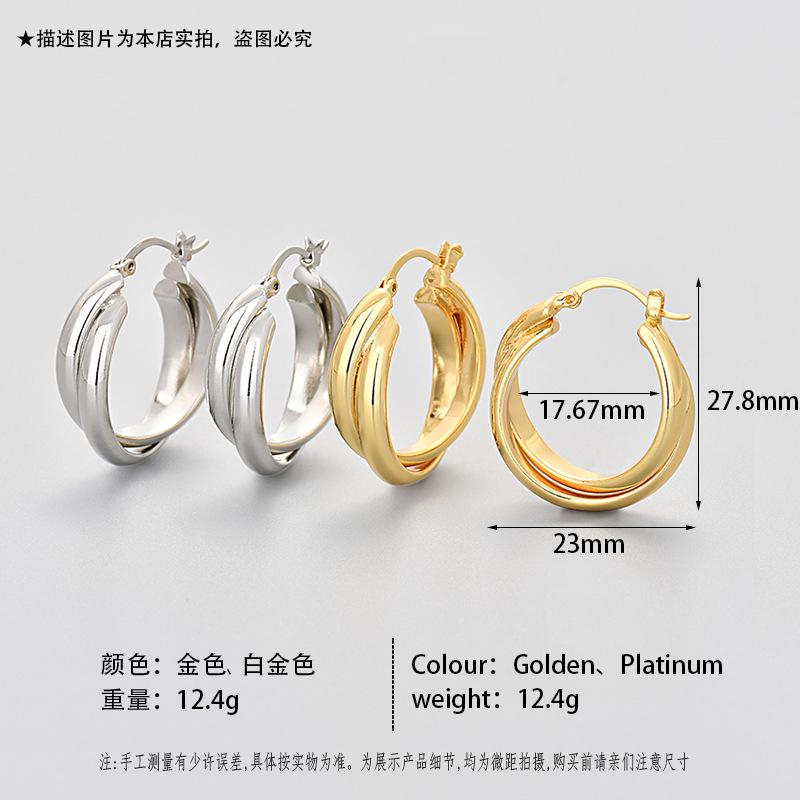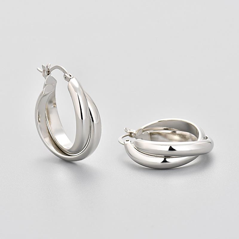 Aretes de Círculo de Lujo Ligero para Mujer Aretes Geométricos de Línea Cruzada Versátiles Estilo Coreano Celebridad de Internet Aretes Distintivos Modernos Cara Brillante Europeo y Americano