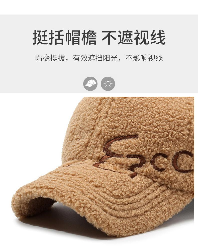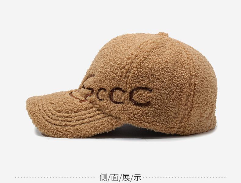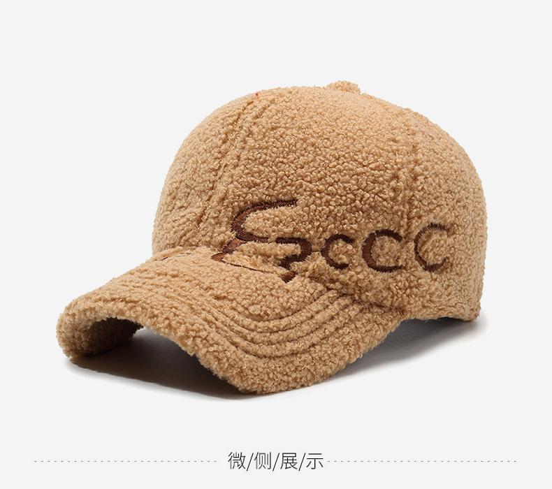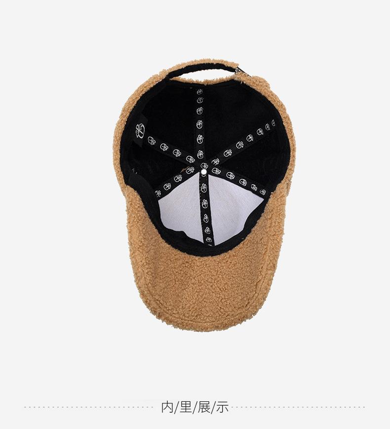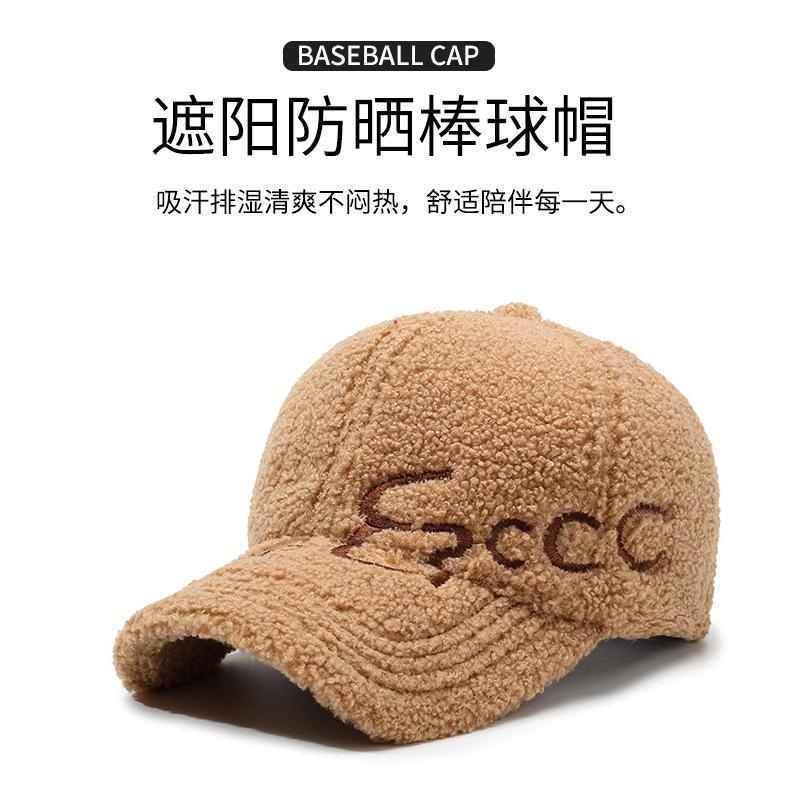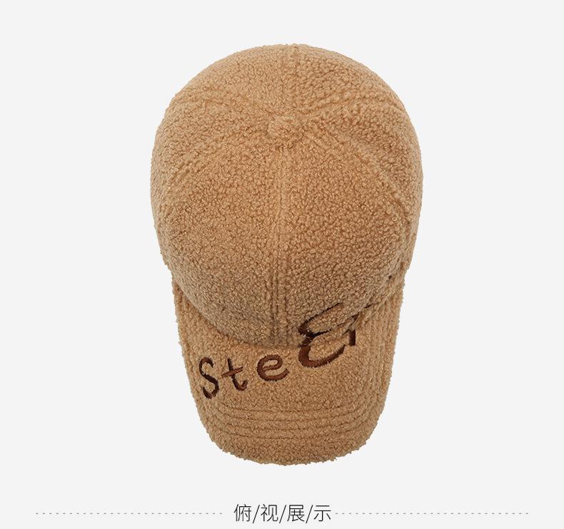 Gorra de Béisbol con Letras Bordadas Estilo Coreano Ins para Mujer Otoño e Invierno Lana de Cordero Sintética Cálida Moda Gorra Pequeña para Hombre
