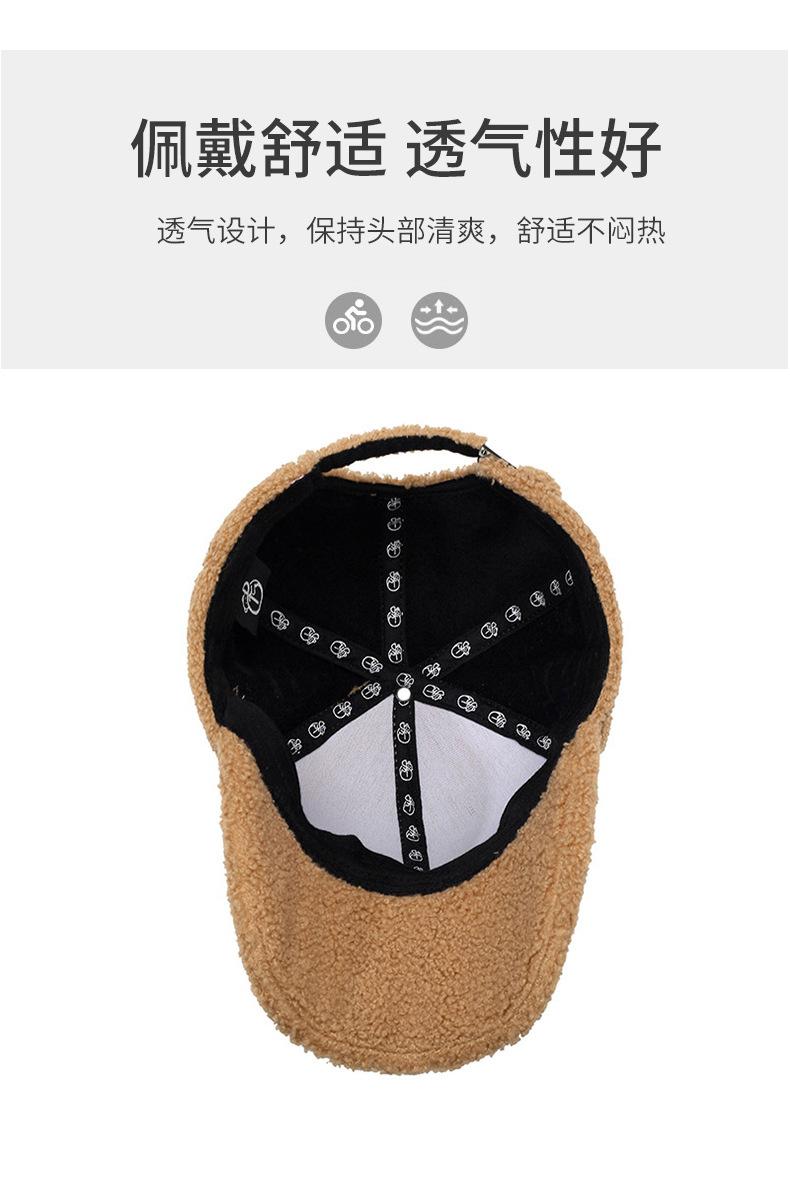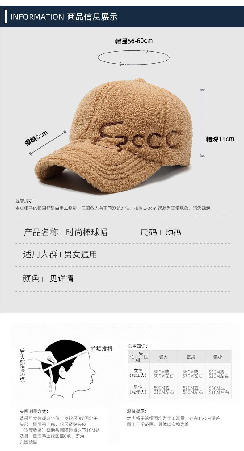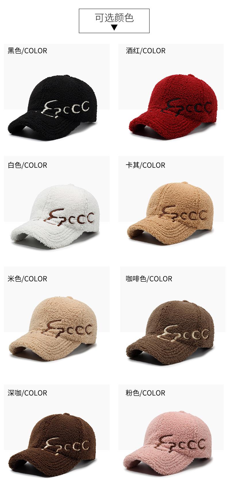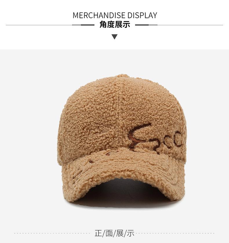 Gorra de Béisbol con Letras Bordadas Estilo Coreano Ins para Mujer Otoño e Invierno Lana de Cordero Sintética Cálida Moda Gorra Pequeña para Hombre
