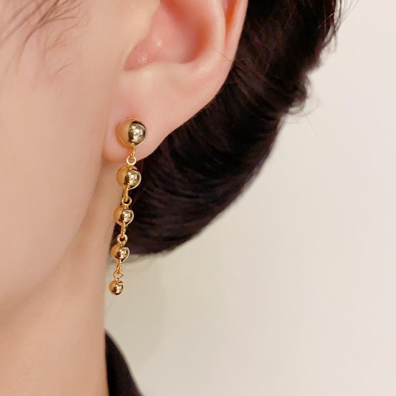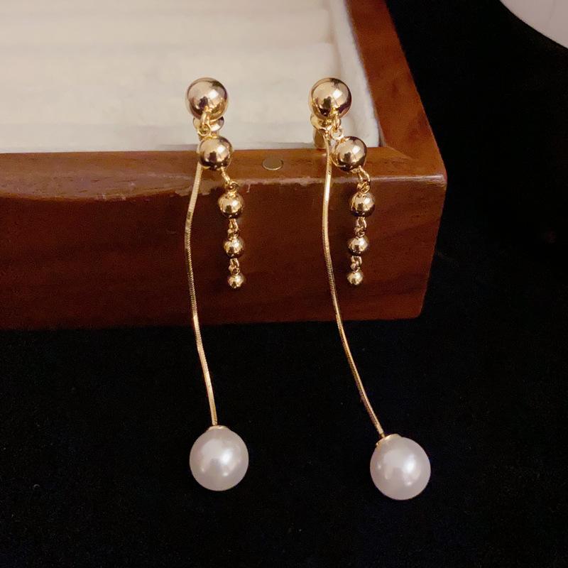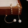 Gold-two wearing pearl long tassel earrings (thick gold plating)